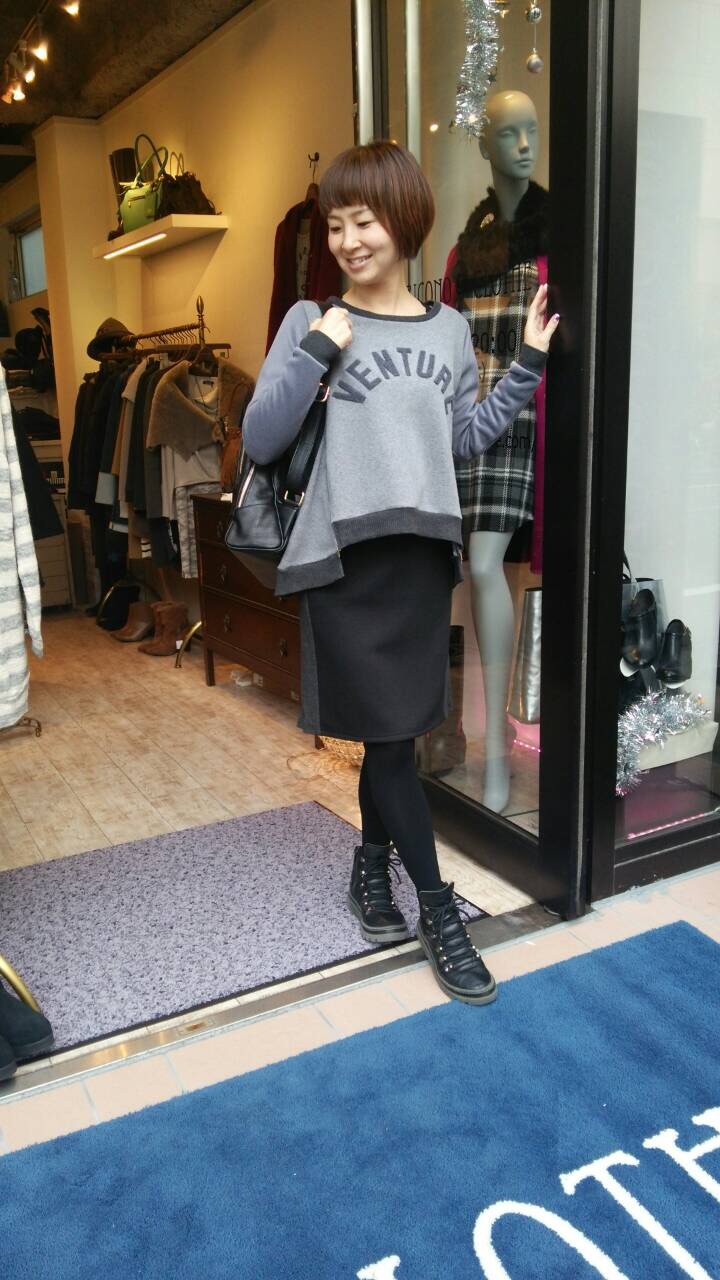おすすめあったか素材 裏起毛のトップスはカジュアルに決めたい冬のお出かけにちょうどいいですね。 同じく裏起毛素材のタイトスカートとコーディネートして、ウィンターシーズン元気に過ごしましょう☆ スカートはカーキとブラックの2色ございます。 トップス ¥10584 スカート ¥8532 2015年11月30日