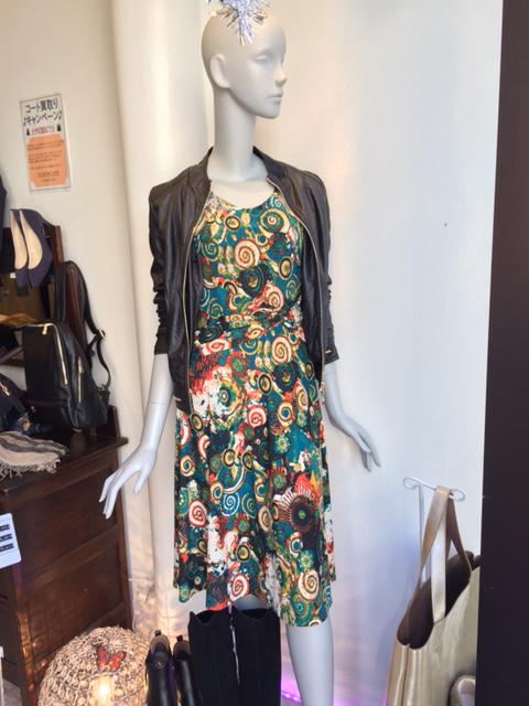 サイケデリック柄インポートワンピース グリーンをベースに色んな色がふんだんに入ってる柄のワンピースは絵画っぽくて超個性的♪ けど意外とどんな色のコートやジャケットにも合うので案外合わせやすいです。 他の人には真似できない、貴女だけの着こなしをぜひ楽しんでみてください☆ 2015年11月16日