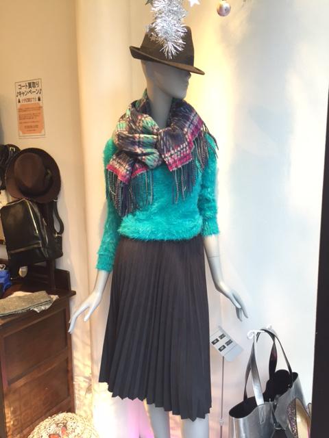 鮮やかニット 続々と入荷してますフワフワあったかインポートニット。 今度はブルーグリーンの丸首バージョンです。 ダークカラーのボトムスやコートに1枚鮮やかな色を合わせることで、パッと華やいで見えますね。 ニット ¥7020 スカート ¥10584 2015年11月23日