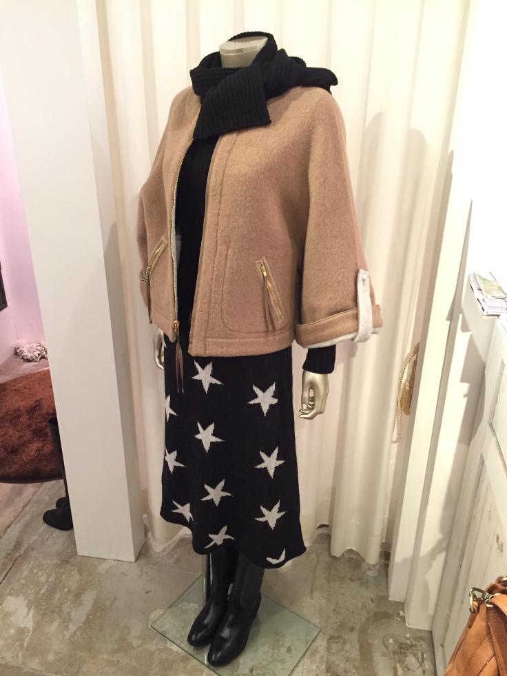 リバーシブルのデザインコート キャメル×アイボリー フンワリ軽くて暖かいウールコートが入荷しておりますーっ ぐるっと返すとアイボリーのコートに大変身‼︎ スタイリッシュなイメージなので、こんな星のニットスカートにもバッチリです こちらのニットスカート、めっちゃスレンダーに見える優れものーっ 極上の暖かされるとですよぉ〜 お得なコートの3000円値引きも今月いっぱい11月30日まで開催しておりますー 山崎範子 2015年11月25日