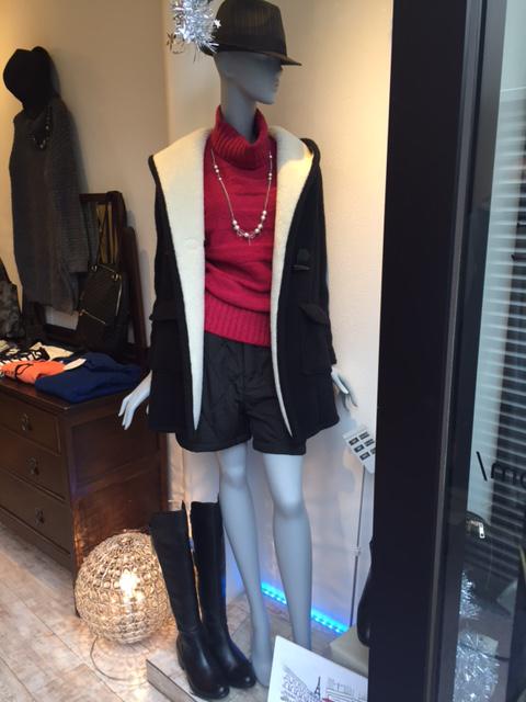 コートの下に着るニットはタートルだとマフラーいらず。