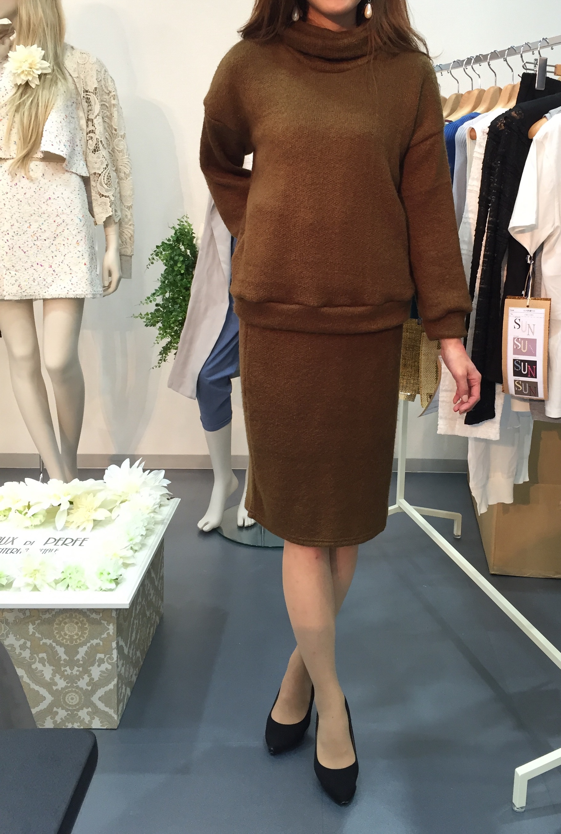 セットアップスーツ 9677円💓 キャメル めっちゃ使える、シンプルなセットアップスーツです。 ドロップショルダーでもあまり大きすぎないトップスなので、デニムやガウチョなどいろいろなアイテムに合わせられて、とっても便利‼️ 合わせて、シンプルなタイトスカートはやっぱり万能‼️ 2つがセットで1万円デニムお釣りが来るなんてーっ、、、、かなーりお得ですよ 来週から冷え込むらしいので、ぜひぜひお得な冬物をゲットされてくださいませーっ 他にブラックもございます 山崎範子 2016年1月7日