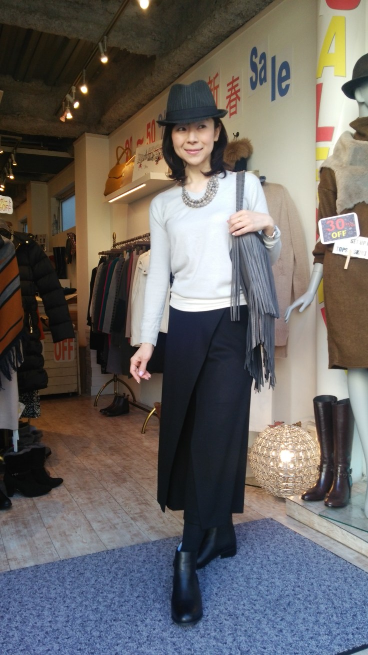 新作ガウチョとお買得Vネックニット♪ スカート風に見える新作ガウチョです(^^)スウェット素材で履き心地抜群ですよ~♪ セールのVネックニットもシンプルで使いやすいのが嬉しい(^^) 春まで使える薄手のニットなので買うなら今!です!! 2016年1月10日