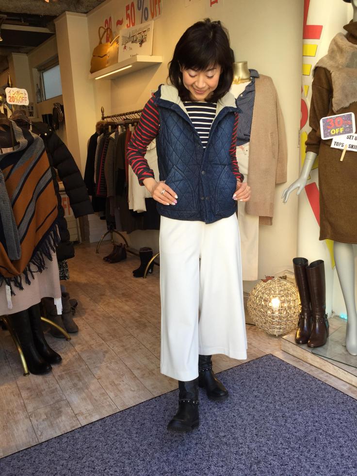 白のワイドパンツの春コーデ 色違いのストライプを組み合わせたおしゃれなカットソーと、デニムベストで、白のワイドパンツをコーディネートしてみました。 パンツ以外はお得なセールプライスです インポートのブーツも、残りわずかーっ デニムベスト 6426円 ストライプカットソー 6728円 パンツ 9612円 2016年1月11日