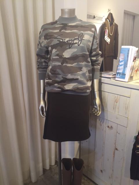 迷彩ニットと楽チンスカート 色味が格好いい迷彩のニットは少し丈が長く、ゆったり着ていただけます。 スウェット風のタイトスカートはウェスト部分がゴムなので気楽に履けますが、デザイン性もありお洒落ですよ〜。 ムートンのショートブーツや革のロングブーツを合わせると、更にお洒落度アップ! 2016年1月15日
