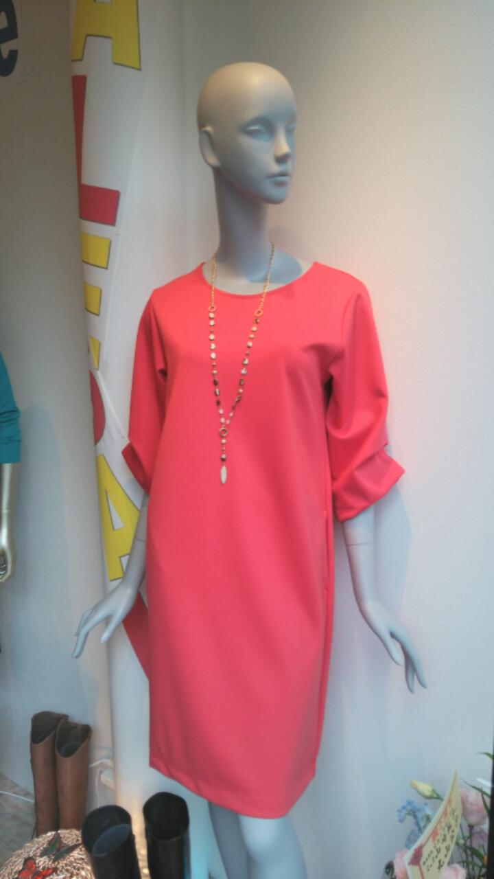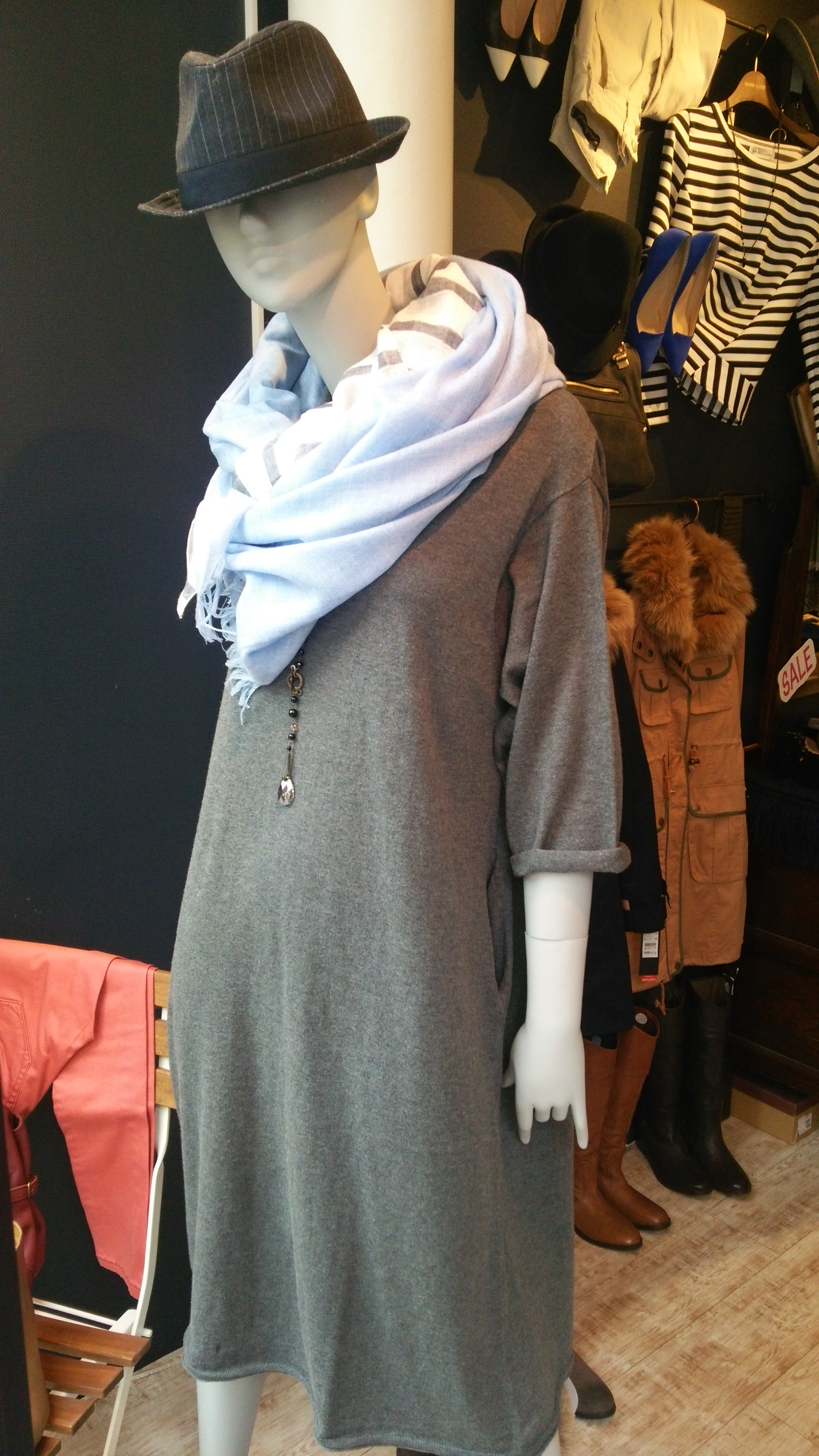 着やすいポンチ素材のワンピースは、お袖も付いていて安心な着丈です!