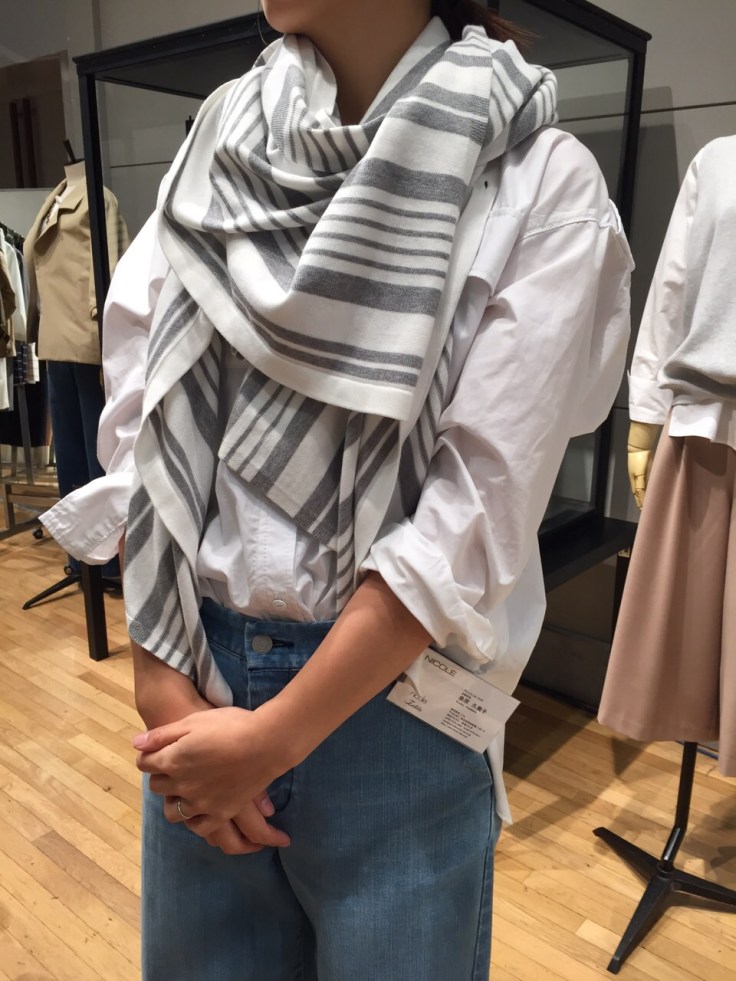 ストール&ジレ 2wayアクセサリー こちらは、ストールにもなるジレでございますーっ これ一枚で、冷たい春風を遮って、おしゃれに暖かく過ごせますよぉ〜 アイボリーとライトグレーのコンビカラーはどなたにも合わせやすい一品です 本日入荷しまーす 山崎範子 2016年2月4日