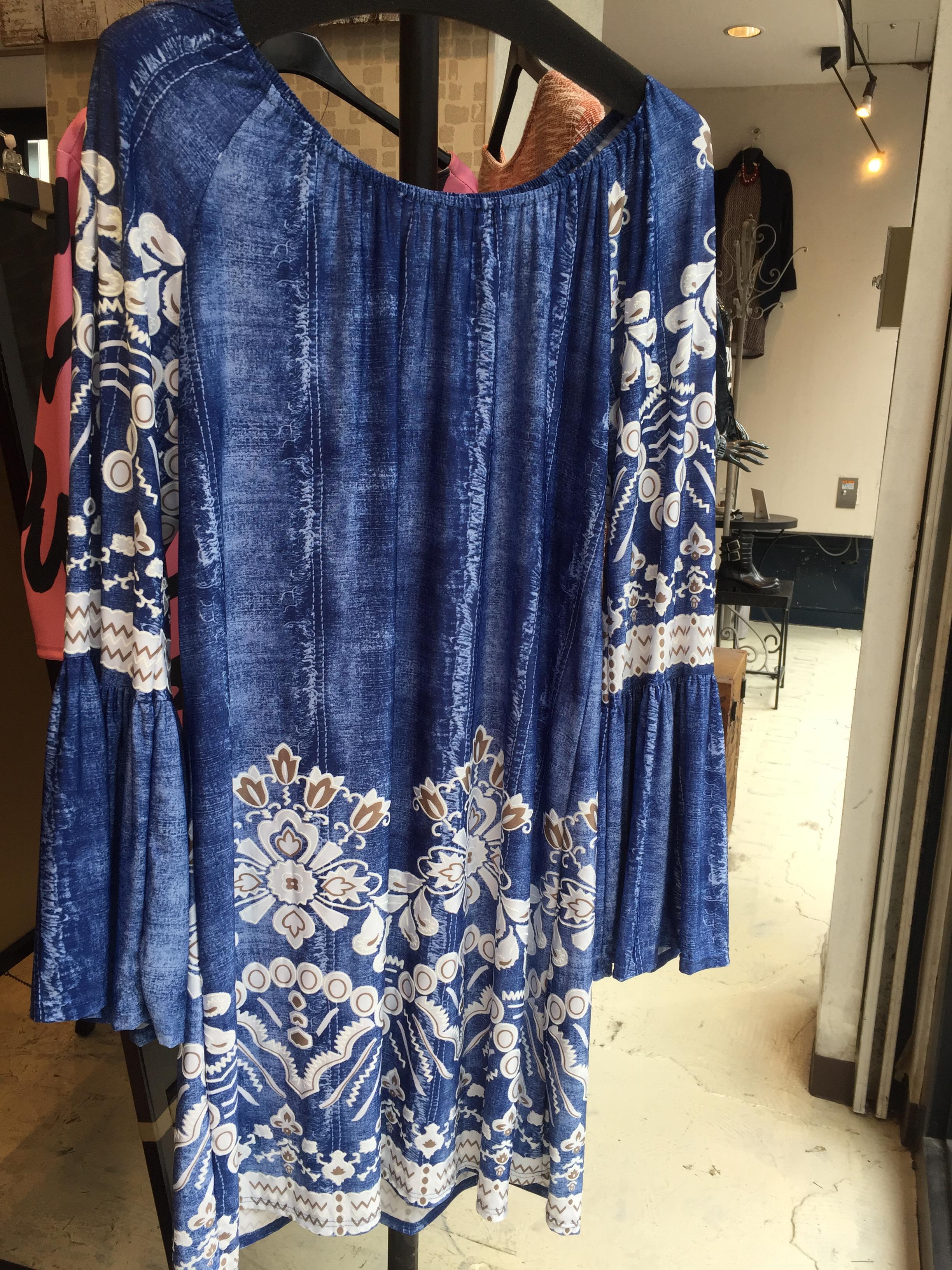 エスニックチュニック インディゴ インディゴカラーにアイボリーのプリントがおしゃれなチュニックです。 テロテロの素材感で、肌触り抜群ーっ。 お袖もあって、ヒップも隠れる、万能なアイテムです 白いボトムで爽やかに着こなしてくださいませね〜 山崎範子 2016年2月8日