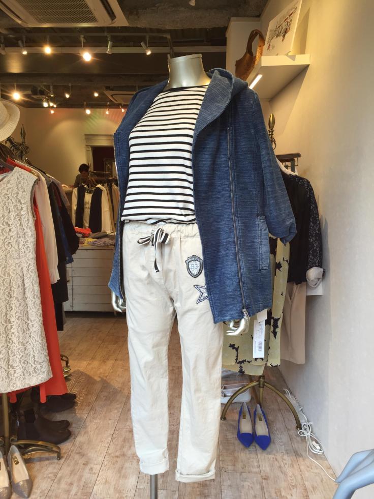 カットデニムのアウター ボーダーのカットソーにイタリアのワッペン付きパンツですーっコーディネートしてみました。 シンプルで定番の組み合わせですが、ピリッとスパイスが効いてます。 とっても履きやすいですよぉ〜 山崎範子 2016年2月20日
