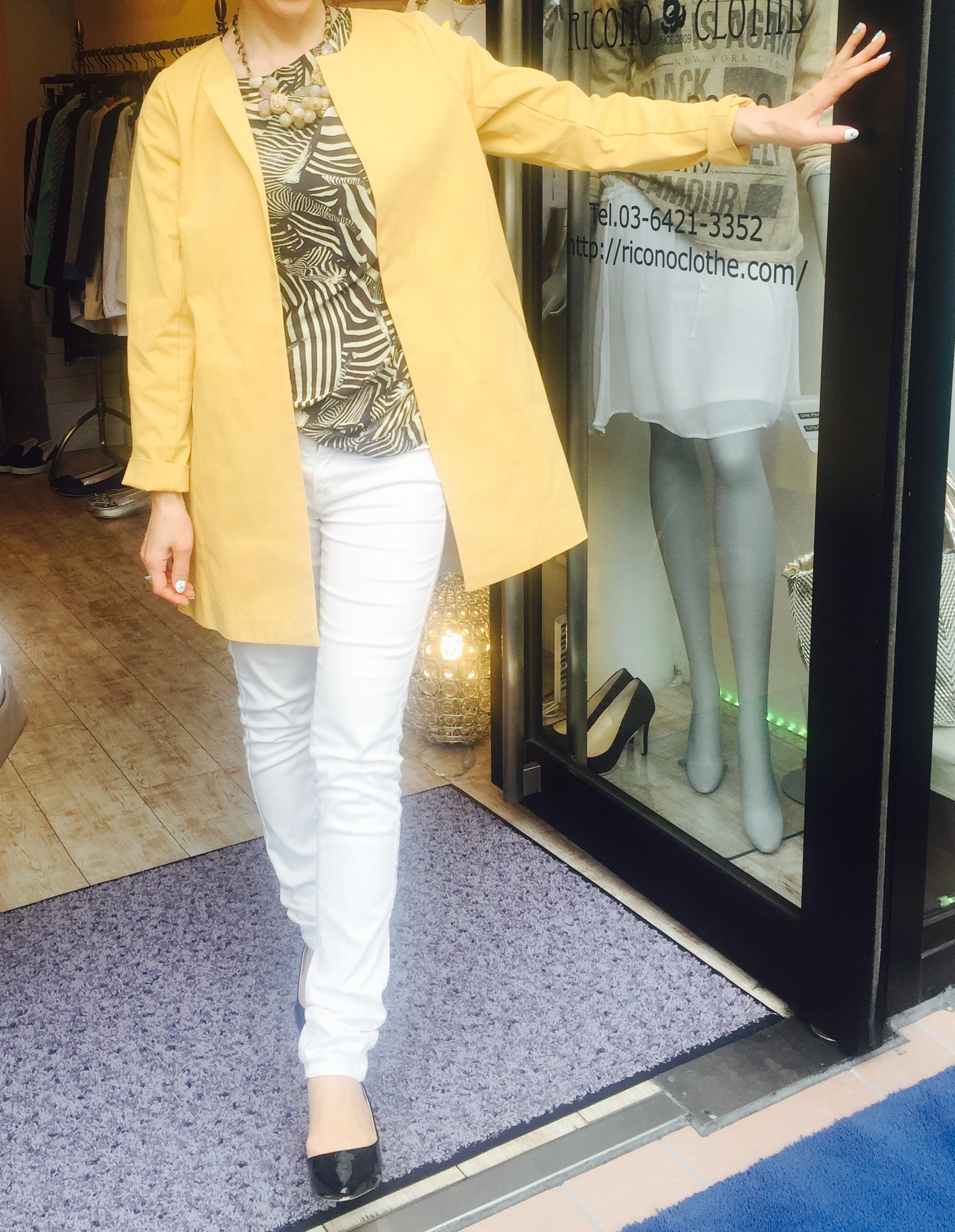 ノーカラーのスプリングコート イエロー ノーカラーのシンプルで軽量なスプリングコートが入荷しております 薄手なので、夏にも活躍しそうです お写真のイエローの他に、 薄いカーキ、ベージュ、ネイビーがございますよぉ〜 2016年2月22日