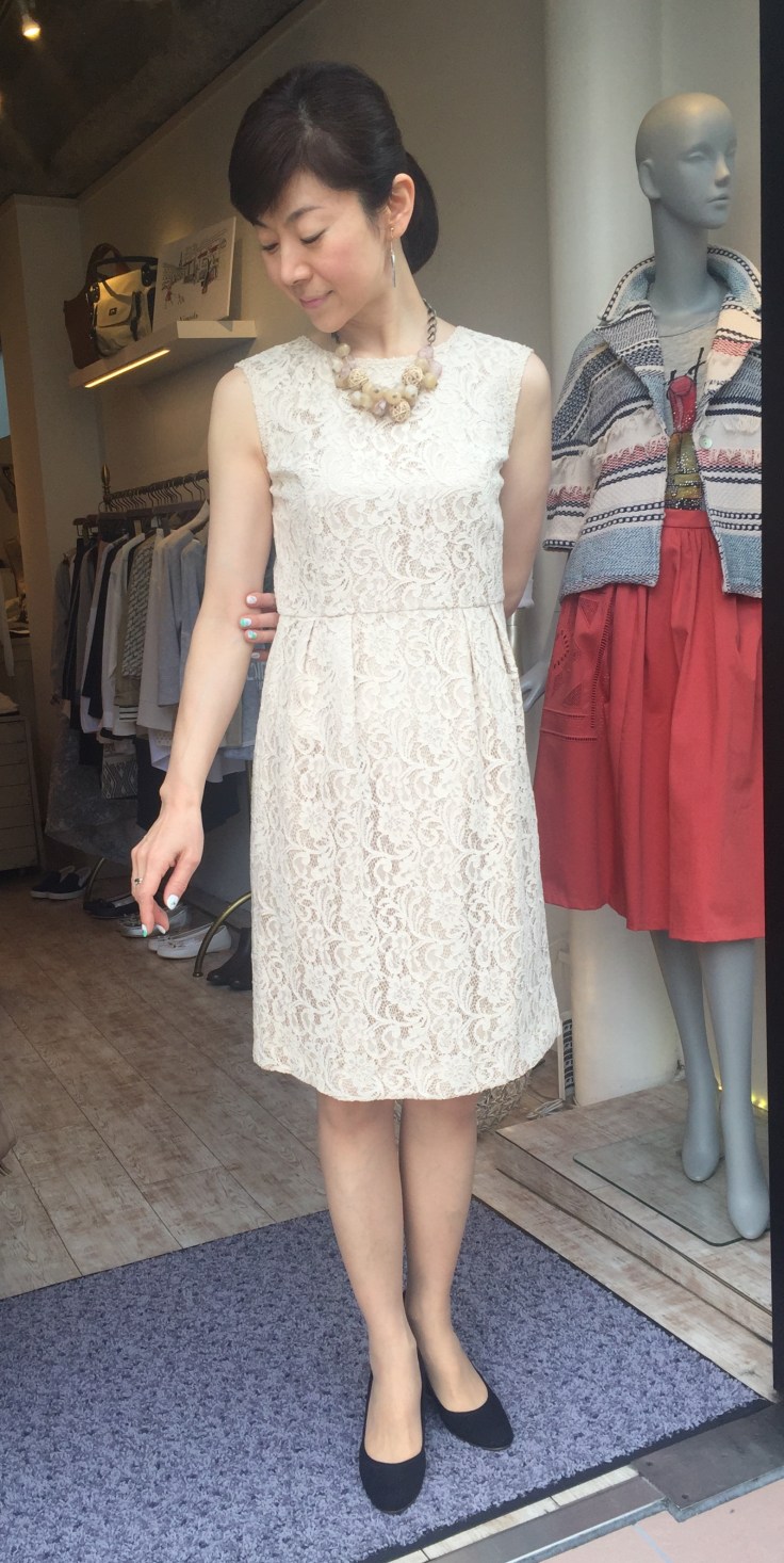 総レースのワンピース ベージュ 豪華なレースのワンピースが入荷しております 入学式や卒業式などにもご活躍しそうです 膝丈あるのも嬉しい、、、、 合わせた新作のネックレスは、神戸のデザイナーズさんから送られてきました。 思ったよりも軽くて、着こなしをぐっと引き締めてくれますよぉ〜 山崎範子 2016年2月22日