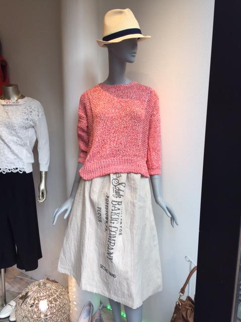個性的コットンスカート ハンドメイドでコーヒー染めがされている個性的なスカートはヴィンテージ感があって超格好いいですよ〜♪ トップスには明るい春カラーを選ぶとより一層キュートさが増しますね☆ スカート ¥9612 ニット ¥9612 2016年2月23日