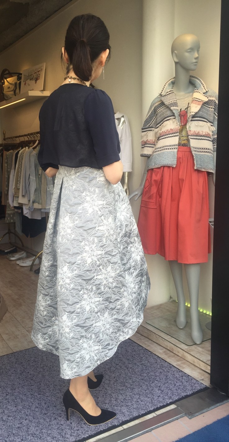インポートドレス グレー アシンメトリーな着丈が素敵なインポートのドレスです ジャガード織りの生地感で、高級感が堪らない、、、、 パーティでは、グンとお洒落さが目立ちますよぉ〜 ドレス 24800円 ボレロ 7900円 山崎範子 2016年2月25日
