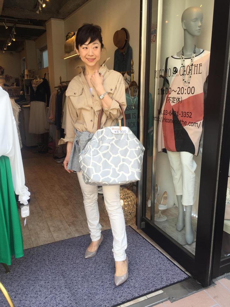 ベージュのサファリシャツと白パン 今期気になるのはナチュラルなベージュカラー! 白、ベージュ、グレーの爽やかなコーディネートにしてみましたぁ ポイントは、ジラフ柄のバッグです 軽〜くてサクサク入りますよぉ〜 カッコ良い上質なコットンシャツはぜひ、このシーズンにゲットしてくださいねー シャツ 12000円 パンプス 9800円 山崎範子 2016年3月4日
