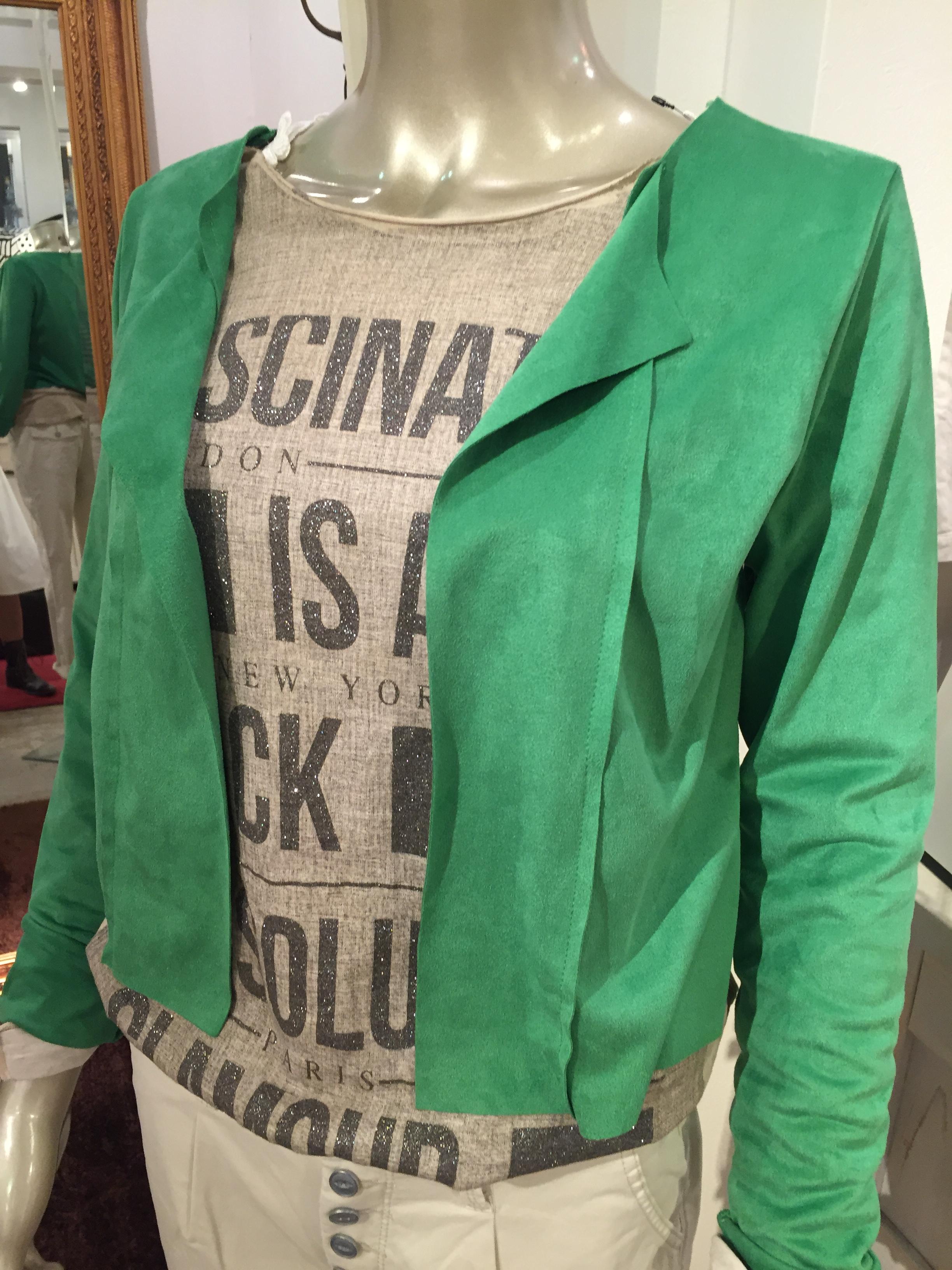 イタリアインポート飲んでコーディネート カッチョ良い英字のインナーと、ポリスウェードのショートカーディガンです ジャケットみたいなデザインなので、きちんと感もあり、今季のボリュームのあるボトムスにピッタシ‼️ お色違いで、キャメルと、ライトグレーもございますよぉ〜 2016年3月5日