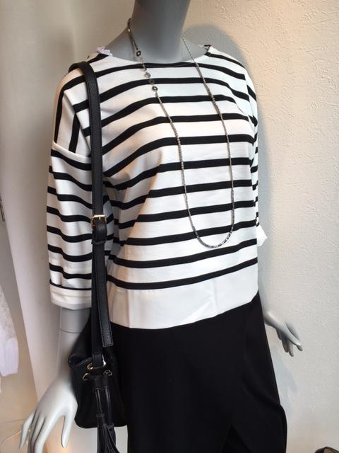 ボーダーカットソー ニコルのボーダートップス入荷しましたぁ〜 着回し抜群のアイテムなので、1枚は持っておきたいですね〜*(^o^)/* 裾は、シフォン素材の切り替えしになっています。お色違いで、ボーダー部分がグレーもございます。 5292円 2016年3月8日