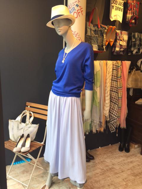 コットン100%ニット これからの季節に大活躍のコットン100%のニットは クルーネックとVネックの2種類から選べます。 カラーもホワイト、イエロー、サーモンピンク、ブルー、ラベンダーと豊富ですよ♪ ニット ¥8424 リバーシブルスカート ¥12960 コメントは受け付けていません。