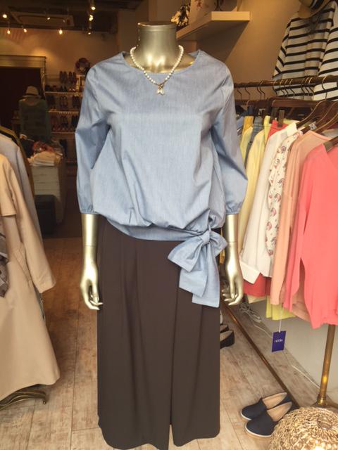 リボン付きブラウス 大きなリボンが特徴のハリのあるブラウスです。 ウェストが絞ってあるのでボリュームのあるパンツやスカートに合わせてもスッキリ着ていただけます。 ブラウス ¥7452 2016年3月20日