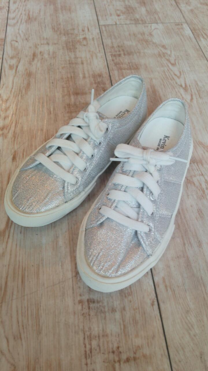 キラキラスニーカー♪ 春だからキラッとしたものを身に付けたくなりますよね(^^) さりげないシルバーラメが大人っぽいスニーカーです! 春のお出掛けにいかがですか~ スニーカー 10584円 2016年3月23日