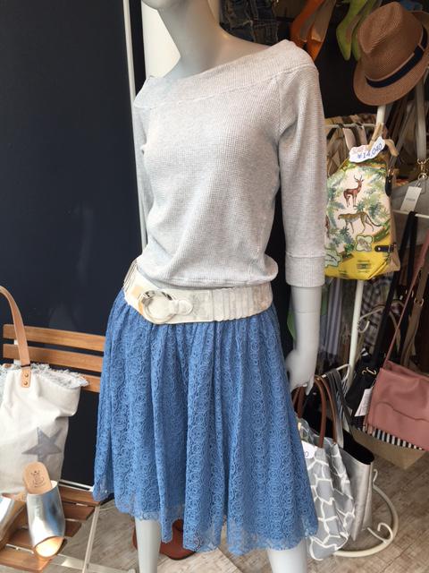 オフショルダー、レーススカート デコルテが綺麗に見える、オフショルダートップス。ワッフル素材で着心地も良く、これから使い勝手の良い七分袖になりま〜す(*^^*) 総レースのリバーシブルスカートで合わせて、春らしく〜♬ オフショルダー 12960円 スカート 15120円 2016年3月23日