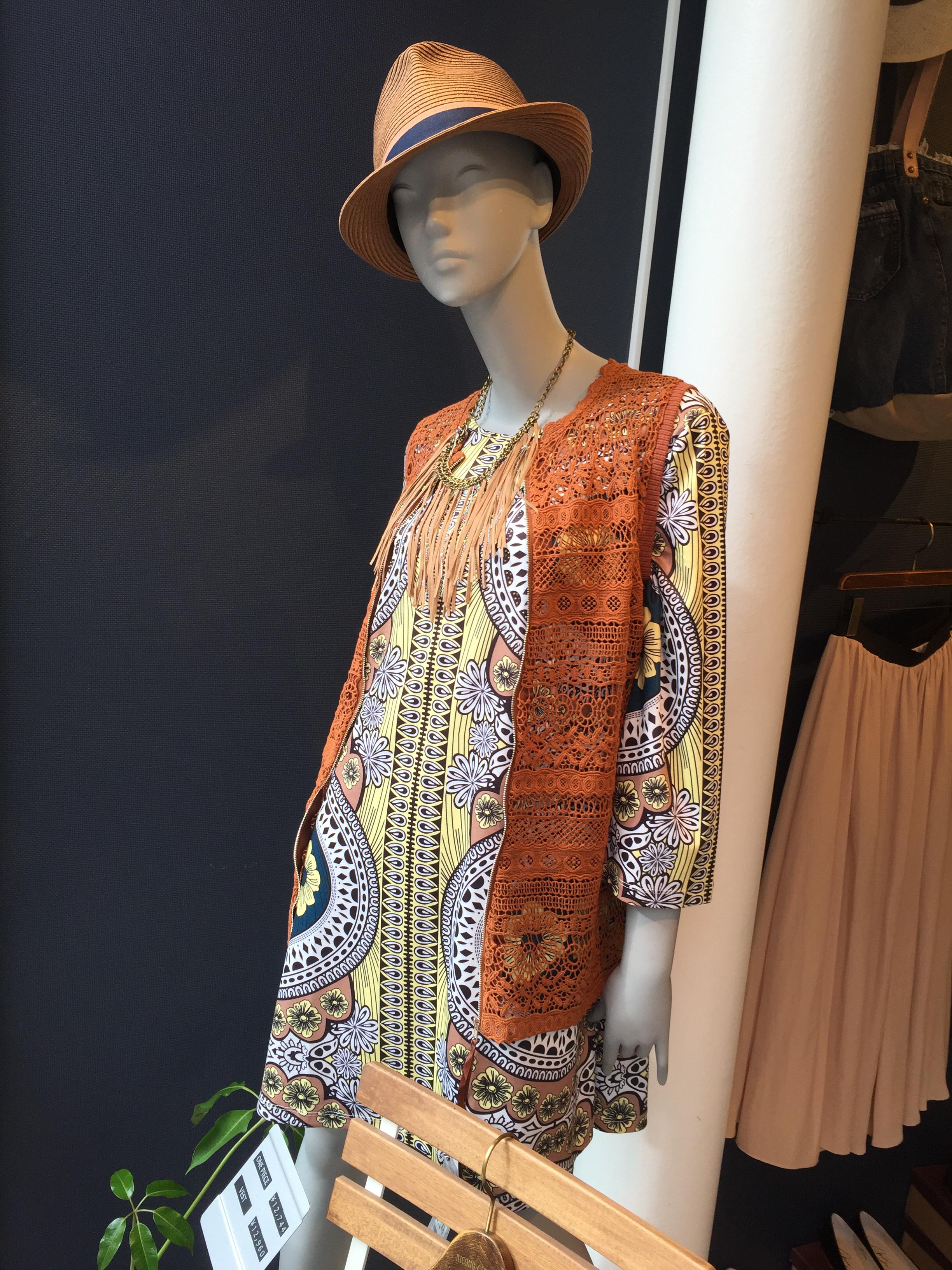 フランスインポートワンピース エスニックなプリントが華やかなワンピースです💓 トレンド感バッチリのレースジレを組み合わせてコーディネートしてみました。 気分を上げたい日にお召しくださいませー お色違いの赤もございます ワンピース 11800円 レースジレ 12000円 山崎範子 2016年4月13日
