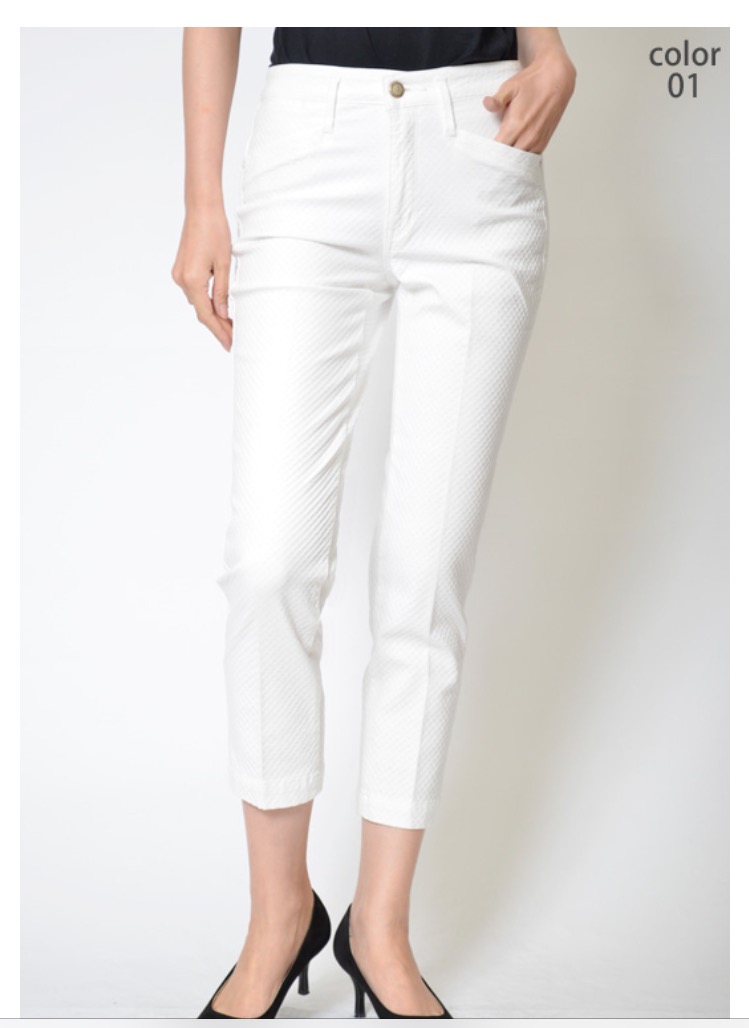 美脚白パン 綺麗めシルエット アートピケという立体感のある生地を使用したシガレットパンツ! 凸凹で表現された格子状の模様は高級感があり透けにくいです。 また、ヒップと太腿周りの肉感をさりげなく包み込んで、ヒップアップと美脚をキープ! こんなパンツは滅多にありませんよぉ〜 足首が見える丈感は、スッキリ爽やかな印象です。 シガレットパンツ 14040円 2016年4月18日