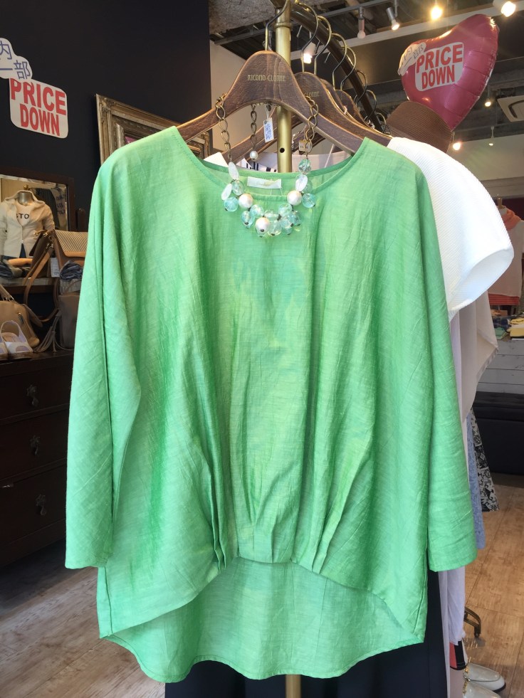 グリーンカラーのブラウス 鮮やかなビタカラーが素敵な、綿麻、ポリエステル混紡のブラウスです さっと手洗いしてシワにもならず、お手入れが楽チン! 更に着心地も抜群ですよぉ〜 忙しい貴女の味方です♡ お色違いで、サックスブルーもございます ブラウス 9180円 2016年4月29日