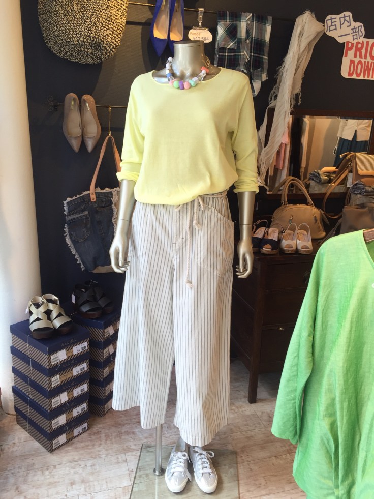 コットン100のサマーニット 上質なコットン素材のサマーニットは嬉しい袖あり! 真夏も、二の腕を気にしないでスッキリ着られます。 さらにこんなプチプラでは、なかなか手に入りません。 綺麗なカラーもポイントです 他に、白、ピンク、ブラックがございます コットンニット 8424円 コットンワイドパンツ 7424円 2016年4月29日