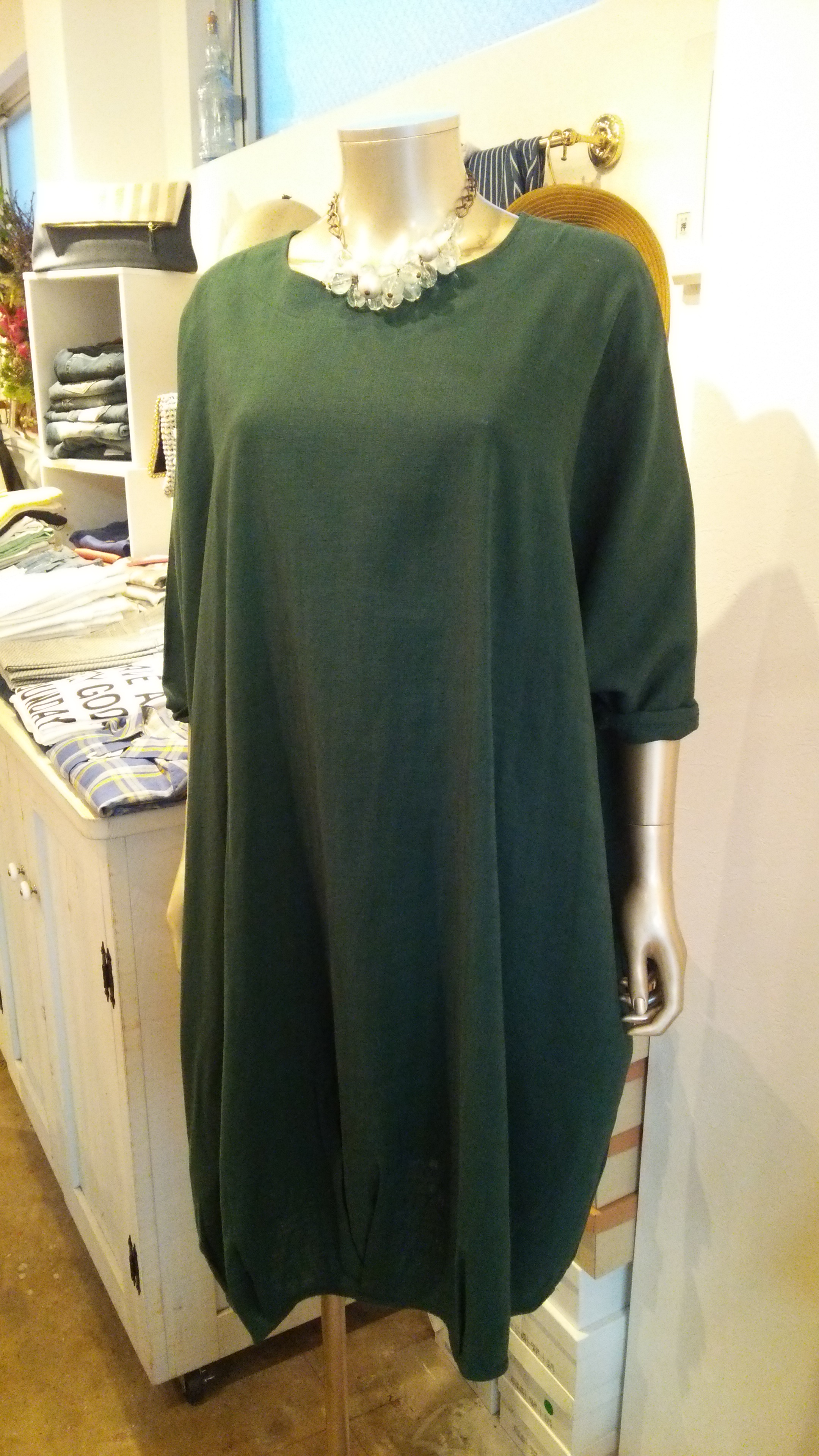 デザインワンピース♪ レーヨンと麻のデザインワンピース♪ ふんわりシルエットで裾のバルーンが個性的です! 袖ありで1枚で着れるワンピースは活躍しそう♪ デザインワンピース 10368円 2016年4月30日