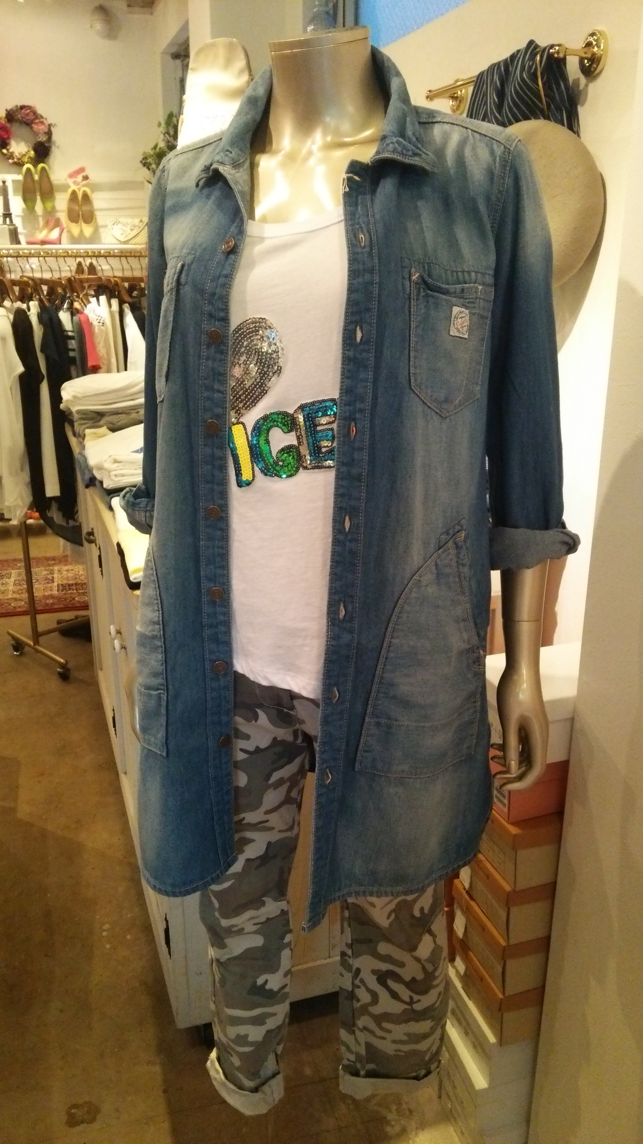 デニムのチュニックワンピース 羽織としても使えるチュニックワンピースは、寒暖差がある今の時期に使えそう♪ ボタンを閉めてスキニーパンツと合わせてもスタイリッシュですよ~ チュニックワンピース 9612円 2016年5月7日