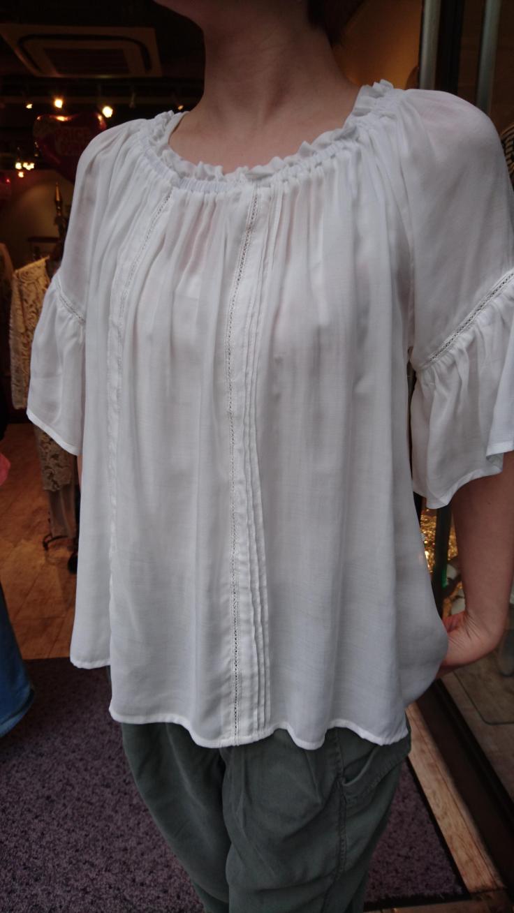 白のデザインブラウスは1枚持ってるとかなり活用できます!