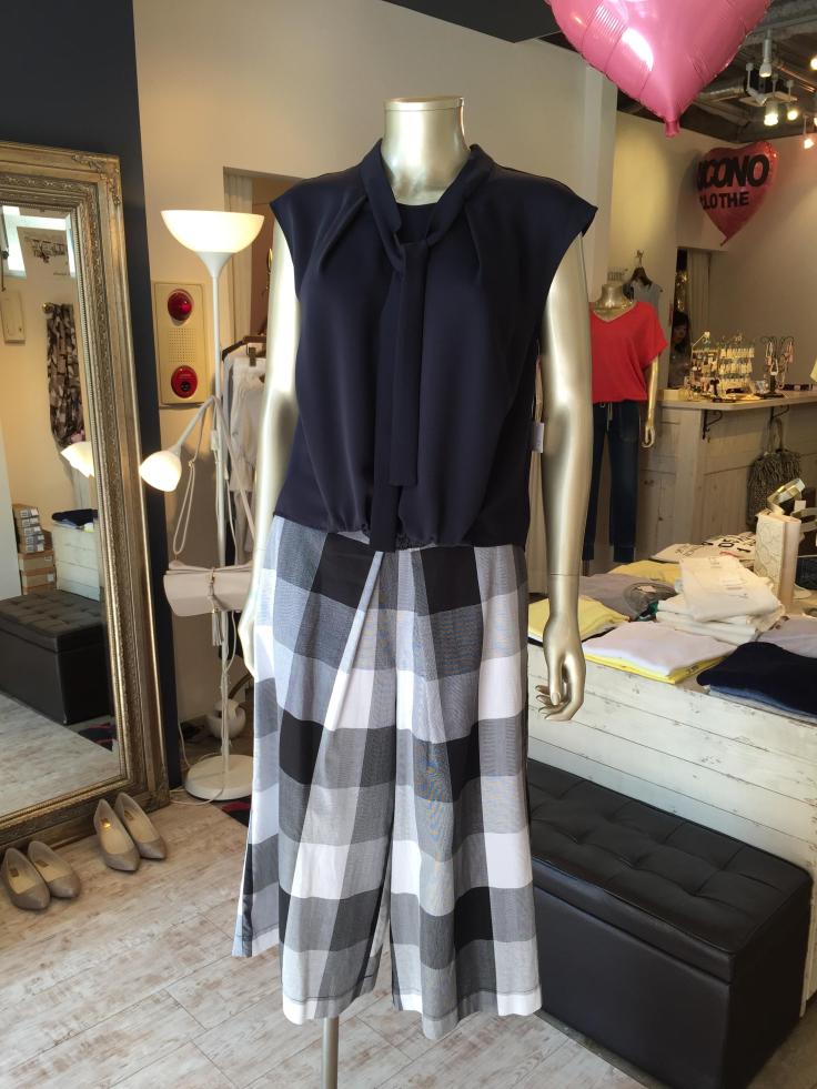 ボウタイブラウスとチェックパンツ 新鮮なブロックチェックのガウチョパンツが入荷して参りました。 トップスをダークカラーで合わせて知的な印象に、、、 オフィスで着てたら、肩肘張らないけど出来る女♡ な感じでしょうか? いつもの黒ガウチョの次はこちらですよぉ〜 ボウタイブラウス 11880円 チェックガウチョパンツ 10584円 2016年5月26日