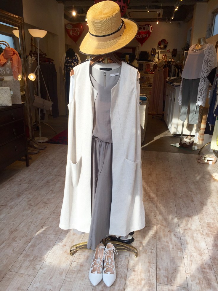 ガウチョオールインワン 一枚で素敵になれる、そんなオールインワン♡ 今年らしくガウチョタイプが登場です スッキリ着やせ効果もあり、オシャレ度はピカイチ♡ お家で手洗い出来て、ピシッと 新品同様♡♡♡ お色違いで、黒やネイビーも入荷しましたよぉ〜 本日はコーディネートに、暑くない夏仕様のロングジレと、イタリアインポートのハットを合わせてみましたぁー ガウチョオールインワン 21384円 2016年5月25日