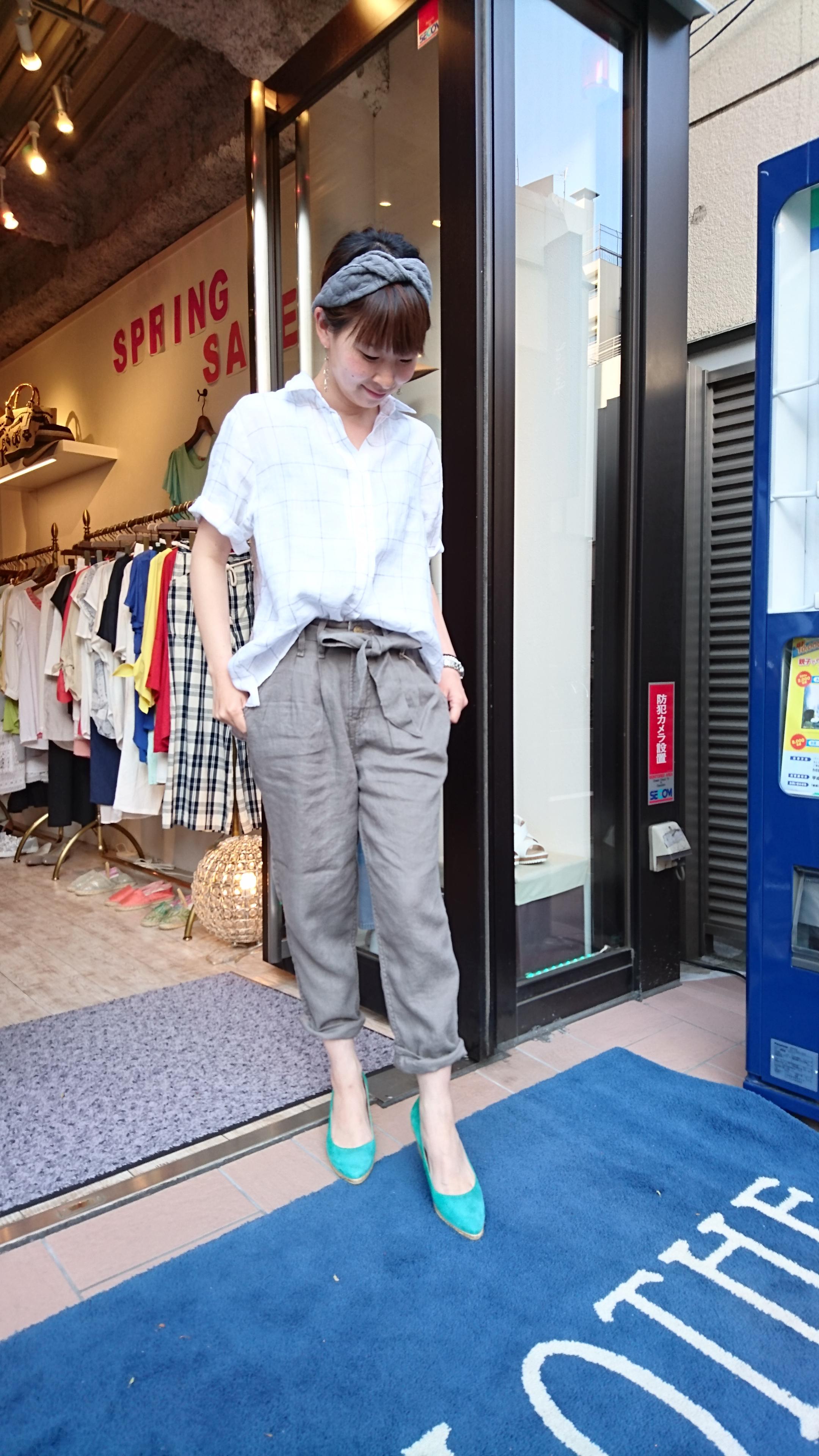 麻パンとフランダースリネンのシャツ♪ 上質なフランダースリネンとゆるっと麻パンのコーディネートは、カジュアルなようで大人っぽいスタイリングです。 今年の夏はゆるっとかっこよくきめてみてはいかがですか~ シャツ 10260円 パンツ 7992円 2016年6月3日
