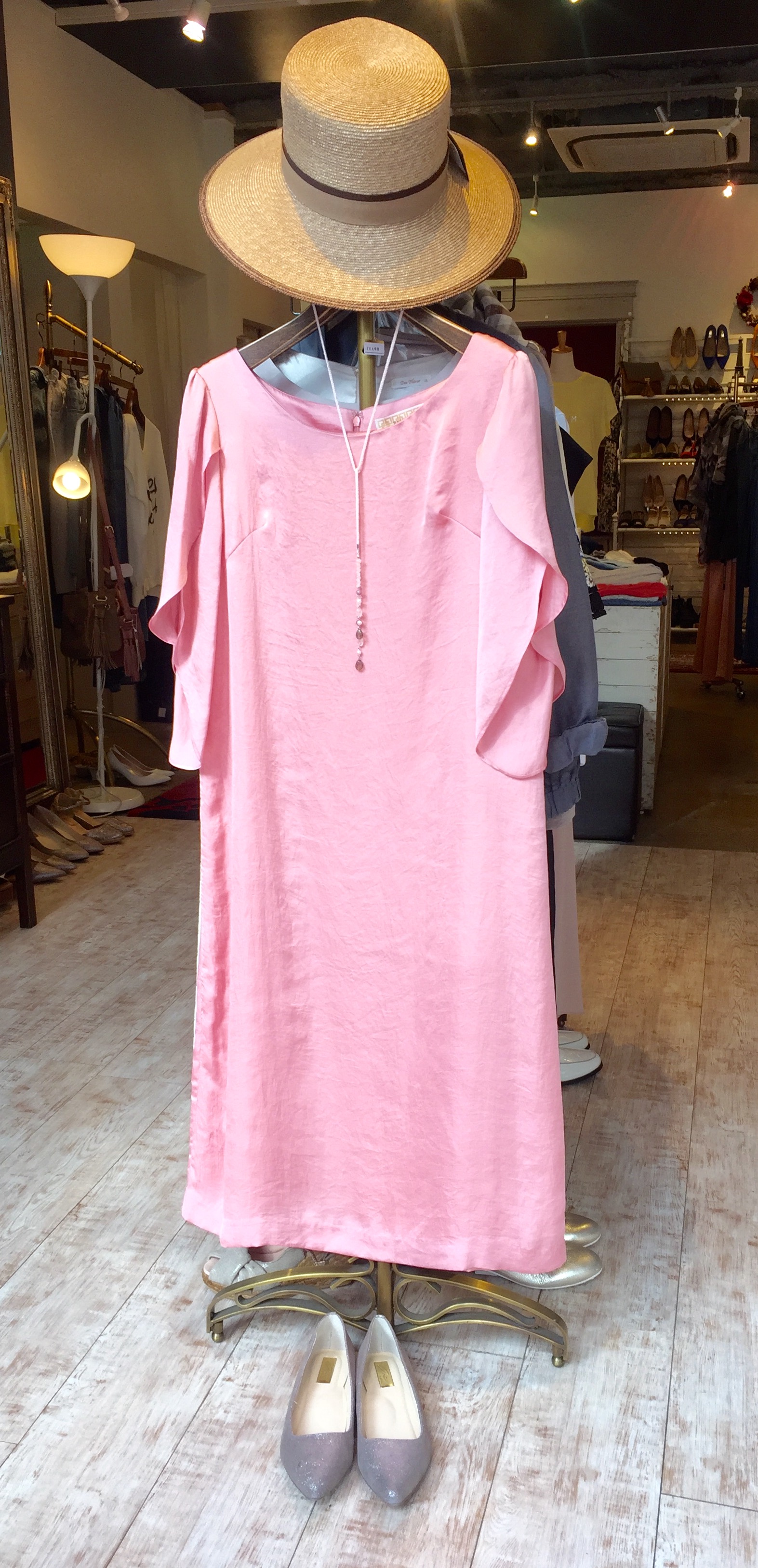フリル袖ワンピース 11880円 さりげなく二の腕を隠してくれる、大人の女性の強〜い味方なワンピース♡ 着丈も長めなので、スッキリ膝も隠してくれます 少しツヤのある生地感が高級感を醸し出してくれる万能なワンピース、、、 オケージョンにもお使いいただけますよぉ〜 ネイビー、ペールグリーン、ブラック、ピンクの4カラーで展開しております ワンピース 11880円 2016年6月5日