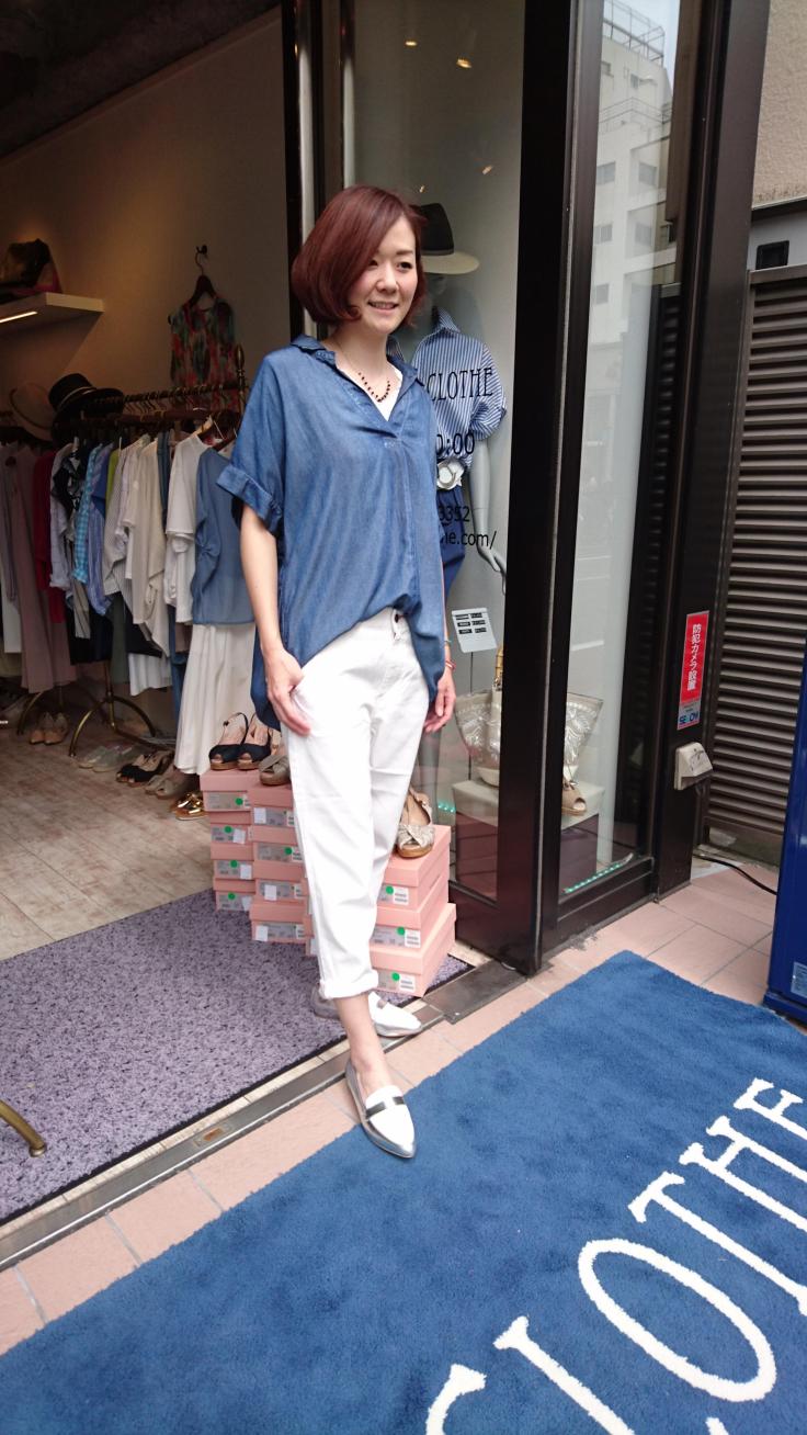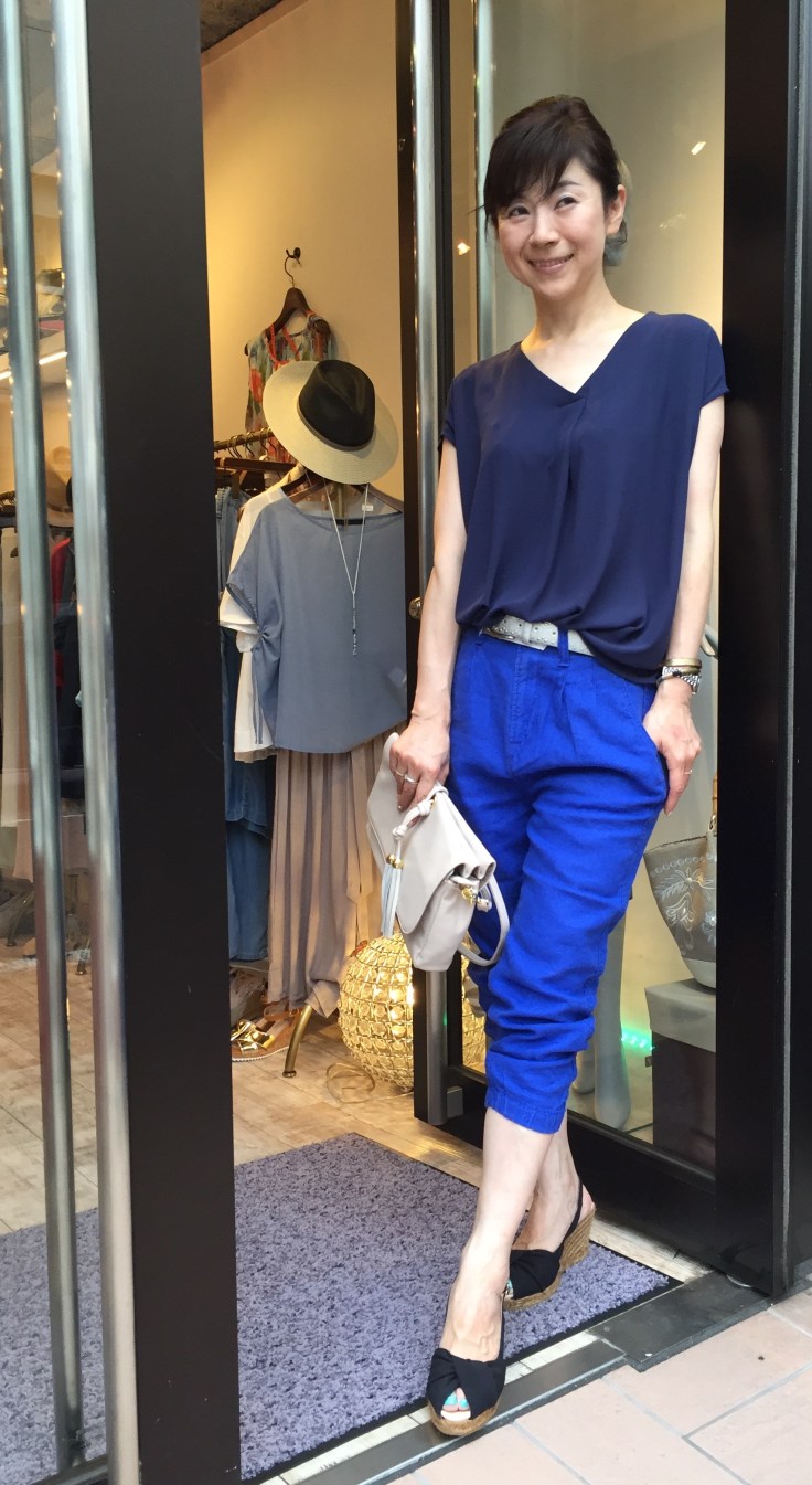 ネイビー❎フェルメールブルー 大人気のシフォンブラウスを、ありきたりに着たくなくて、、、こんな鮮やかなブルーでコーディネートしてみました。 ネイビー❎ブルーは、クールで大人っぽい着こなしになります。 ポイントは、シルバーのベルトをチョコっと見せる事です! 皆さんもぜひやってみてくださいねー ブラウス 10692円 パンツ 12960円 ベルト 6392円 2016年6月19日