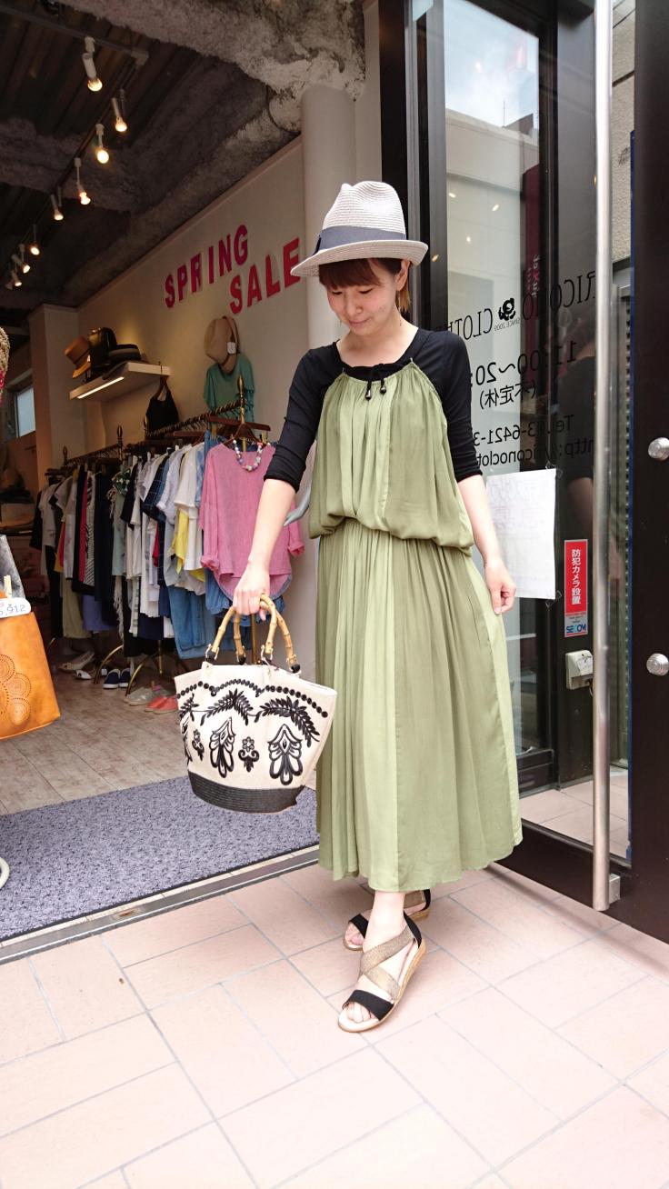 ヨウリュウ生地の配色セットアップ♪ カーキ×カーキの配色がとってもおしゃれなキャミソール&2wayスカート スカートはベアトップワンピースにもなる2wayスカートです! キャミソール 8532円 スカート 9612円 2016年6月6日