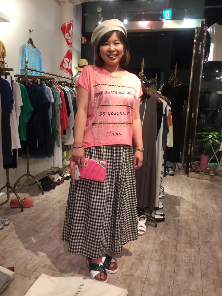 ギンガムチェックのスカートと英字Tシャツ イタリアインポートのTシャツは、ストロベリーピンクの爽やかなカラーに、おしゃれな英字のデザイン! デニムでもスカートでもバッチリ合いますよぉ〜 夏休みに、ルンルンでお出かけしたくなるスタイリングです 色違いでサックスブルーもございます Tシャツ SALE 5216円 2016年7月28日