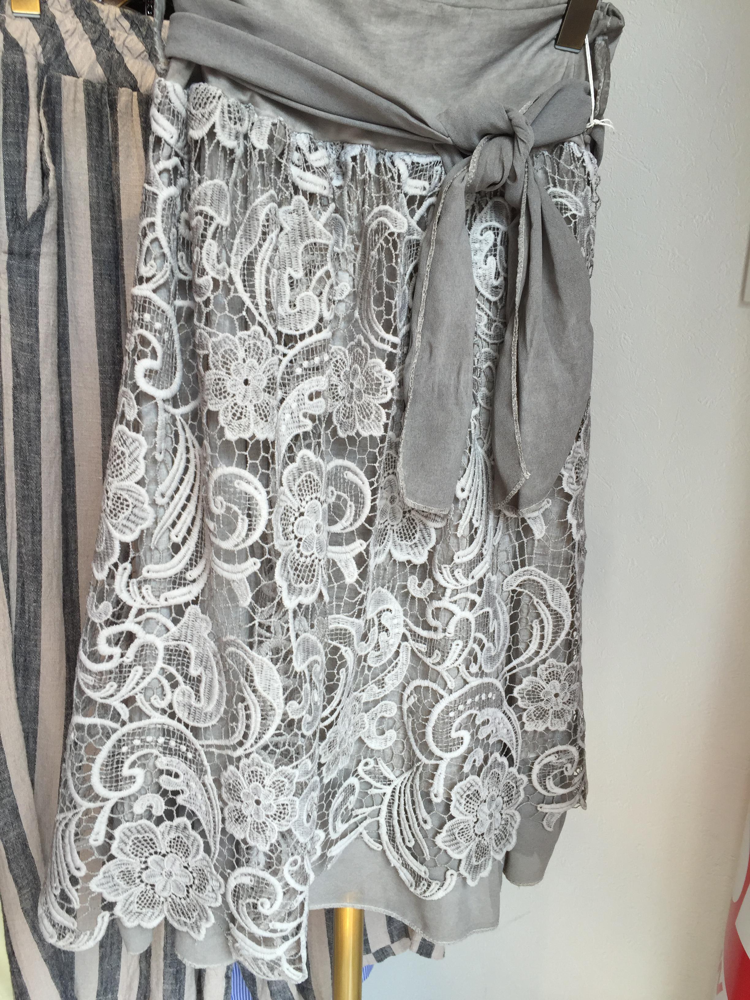 イタリアインポート レーススカート 上質なレースのスカートが、何と40パーセントオフ💓💓💓 伸縮する素材なので、ヒップ周りも楽チンで、膝丈なのも嬉しい💓 黒、チャコールグレー、グレージュの3カラーです 2016年8月3日