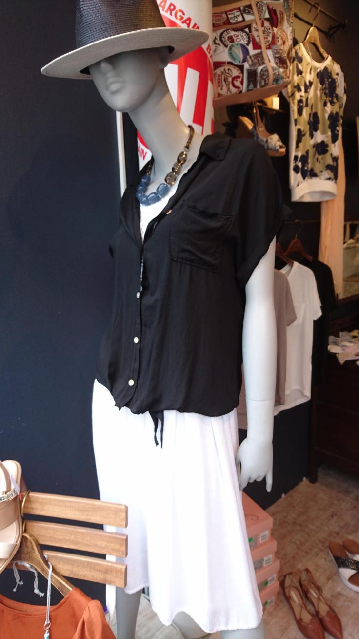 インポートワンピースとブラウス♪ 爽やか白のノースリーブワンピースにとろみブラウスをコーディネート♪ 素材の柔らかさと色のコントラストが絶妙でーす! ブラウス 6728円 ワンピース 8294円 2016年8月4日