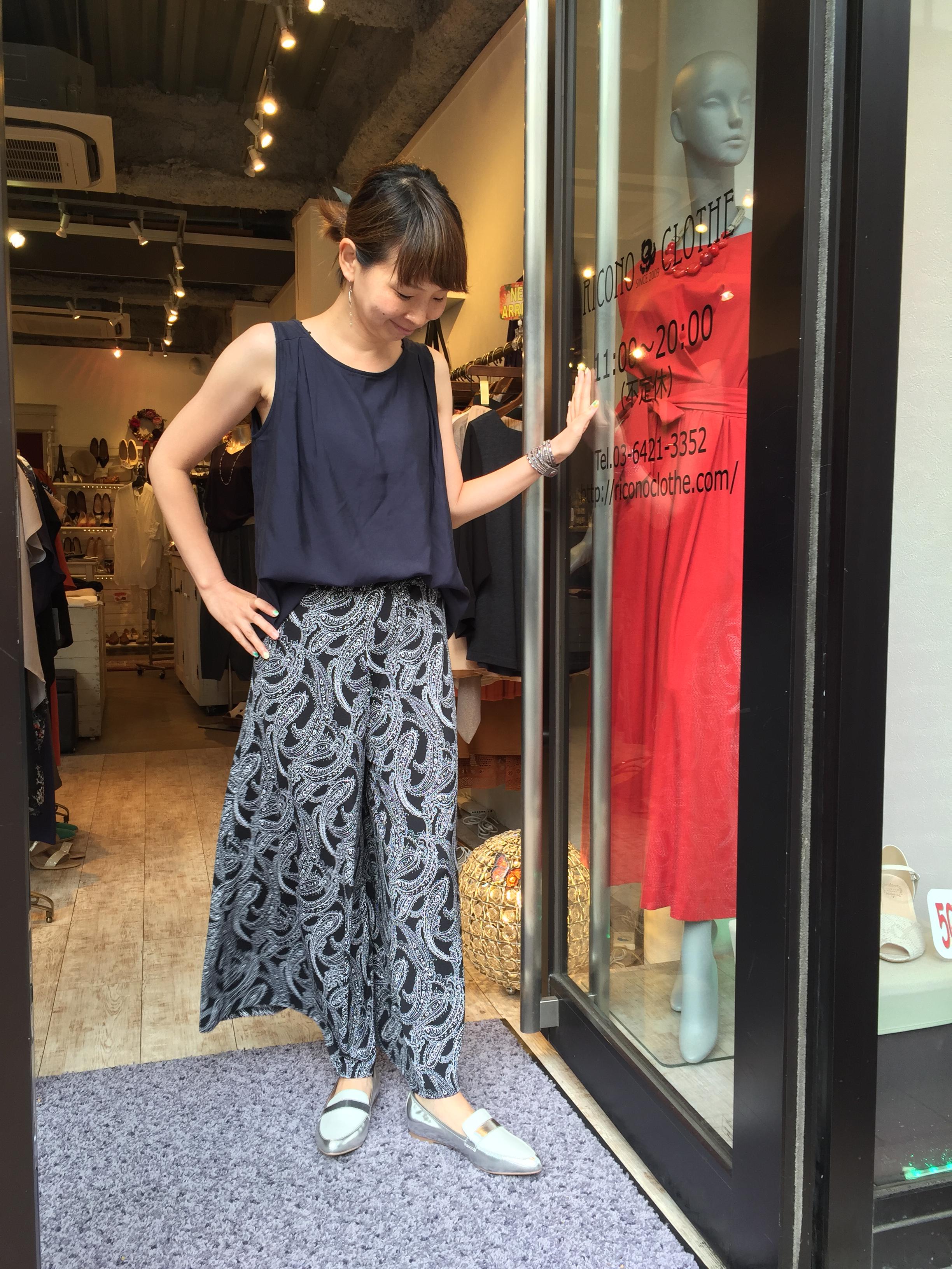 ペイズリーのサラサラワイドパンツ 6372円 新作のワイドパンツは、ワンランク上のペイズリープリントです テロテロサラサラで着心地が良いですーーーっ ペイズリーワイドパンツ 6372円 牛革スリッポン 10584円 2016年8月18日
