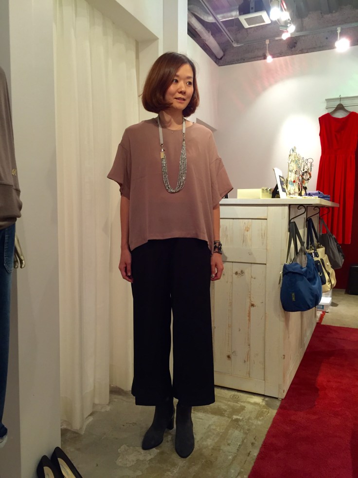 T型トップスとワイドパンツ ストン、と落ち感のあるテロテロパンツは、適度な厚さでこれからの季節にぴったりです。 太って見えない、シワにならない、ホームクリーニングOKの三拍子! 黒の他に、ベージュもございます T型トップス 9612円 ワイドパンツ 16200円 2016年8月22日