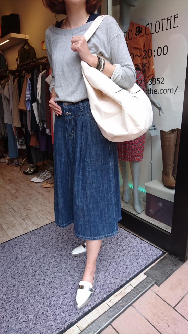 デニムワイドパンツ♪ ふんわりとしたシルエットのデニムワイド(^-^) コンパクトなトップスと相性がいいですよ~♪ 今年の秋はデニムスタイルでカジュアルに~ トップス 9612円 デニムワイド 7452円 2016年8月30日