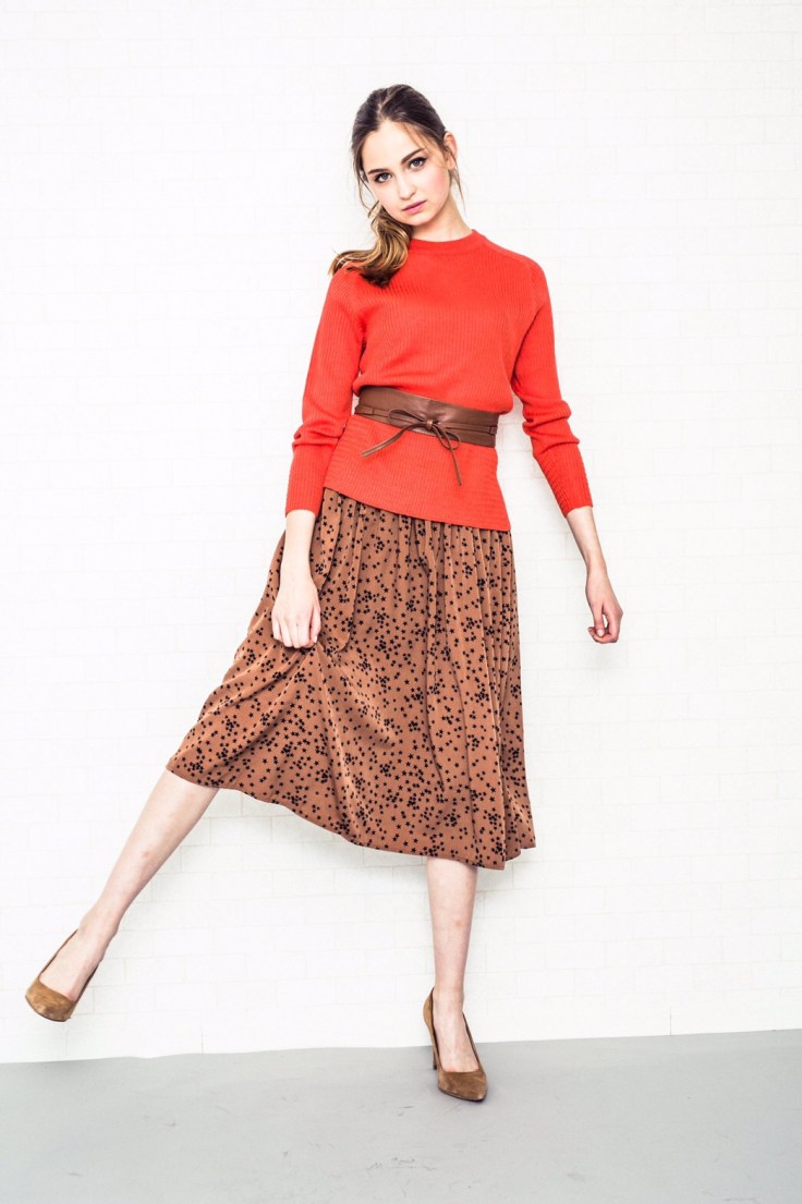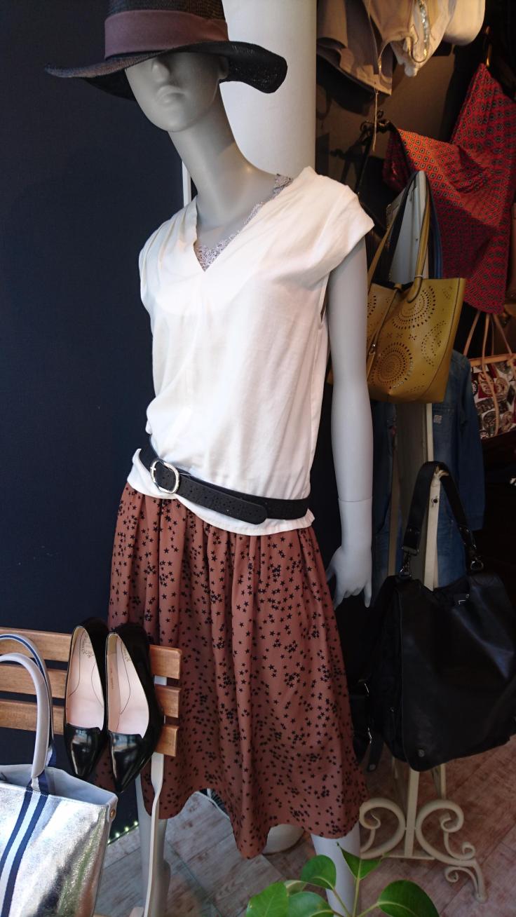 星柄プリントスカート ランダムに散らばった星プリントのおしゃれなスカートです。 サラッサラーの素材なので、通年通してお召しいただけます。 お写真みたいにオレンジでで合わせても、もちろん、ホワイトやブラックで合わせても素敵ですよぉ〜 2016年9月3日