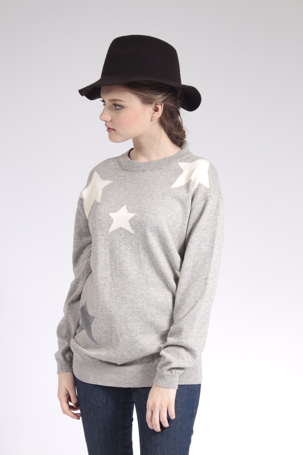 星のニット 14040円 神戸の老舗ニットメーカーの新作はこんなおしゃれな星のモチーフです コットン✖️ナイロンの素材なので、フワフワサラサラーっの着心地です オフ白とグレーで展開しております 2016年9月4日