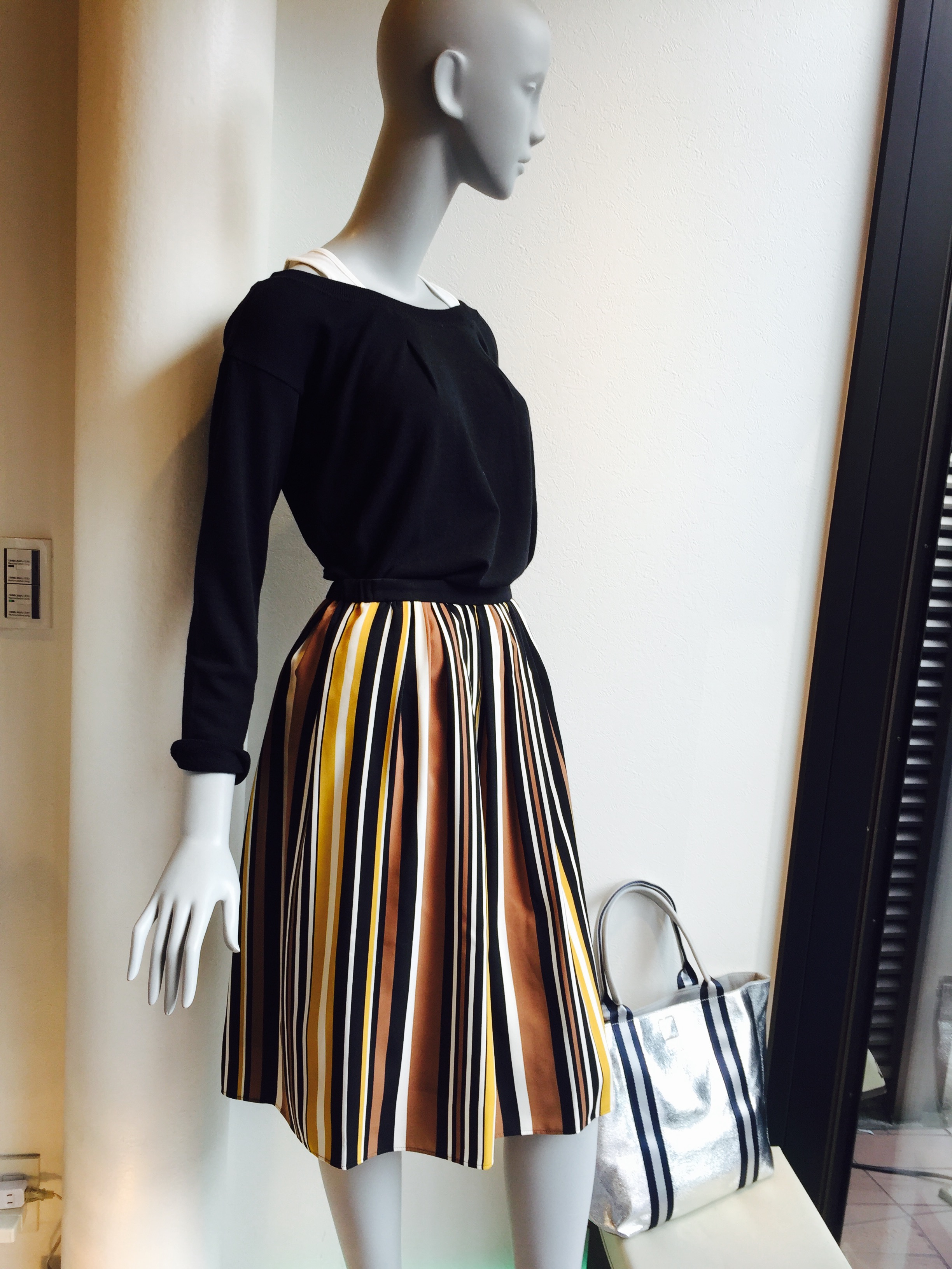 マルチストライプスカート おしゃれなマルチストライプのスカートが入荷しました(⌒▽⌒) バックにゴム仕様なので、着心地も楽チン。 タンクトップを着たようなデザイントップスでコーディネート♡ お色違いのグリーンもございますよぉ〜〜 2016年9月10日