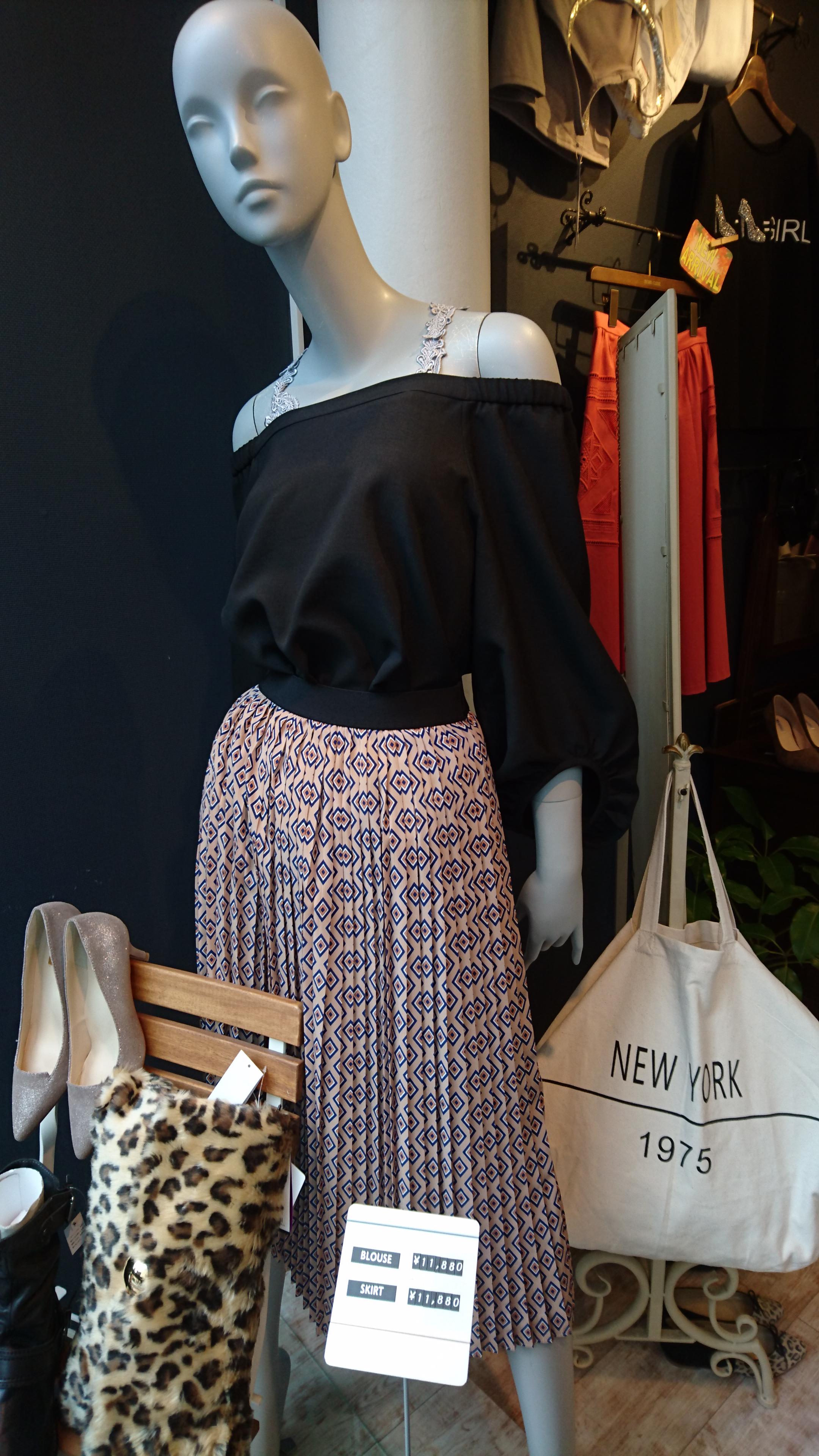 オフショルダーブラウスとプリーツスカート♪ 今年人気のオフショルダーブラウス♪ スカートで合わせるときはインしてスッキリと~(^-^) 流行を取り入れた大人のお洒落を楽しんじゃいましょう~ オフショルダーブラウス 11880円 スカート 11880円 2016年9月11日