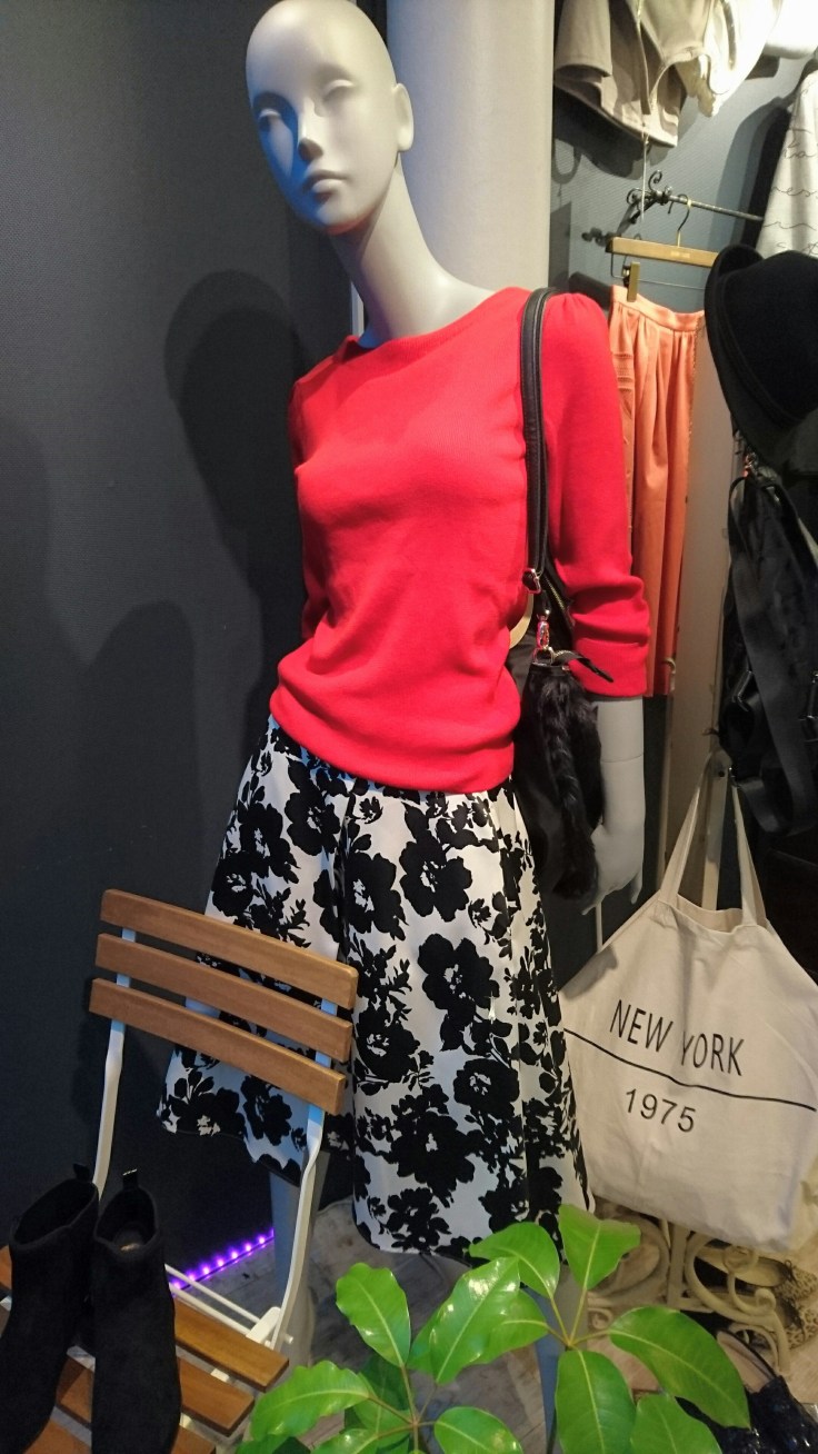 コットン100%のニットと花柄スカート♪ コットン100%で着心地良いニットと花柄スカートのコーディネート 今の時期何を着たら良いか悩みますよね~、そんな時はコットン100%のニットが大活躍しますよ~ お色はレッドとカーキの2色です♪ ニット 7020円 スカート 14040円 2016年9月14日