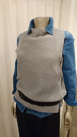 ニットベストとデニムシャツ♪ コットンとアクリルのニットベストとデニムシャツのコーディネート♪ ファッションのワンポイントになるニットベストは、下に着るものによって雰囲気が変わるオシャレアイテムです ニットベスト 10800円 デニムシャツ 11664円 2016年9月19日