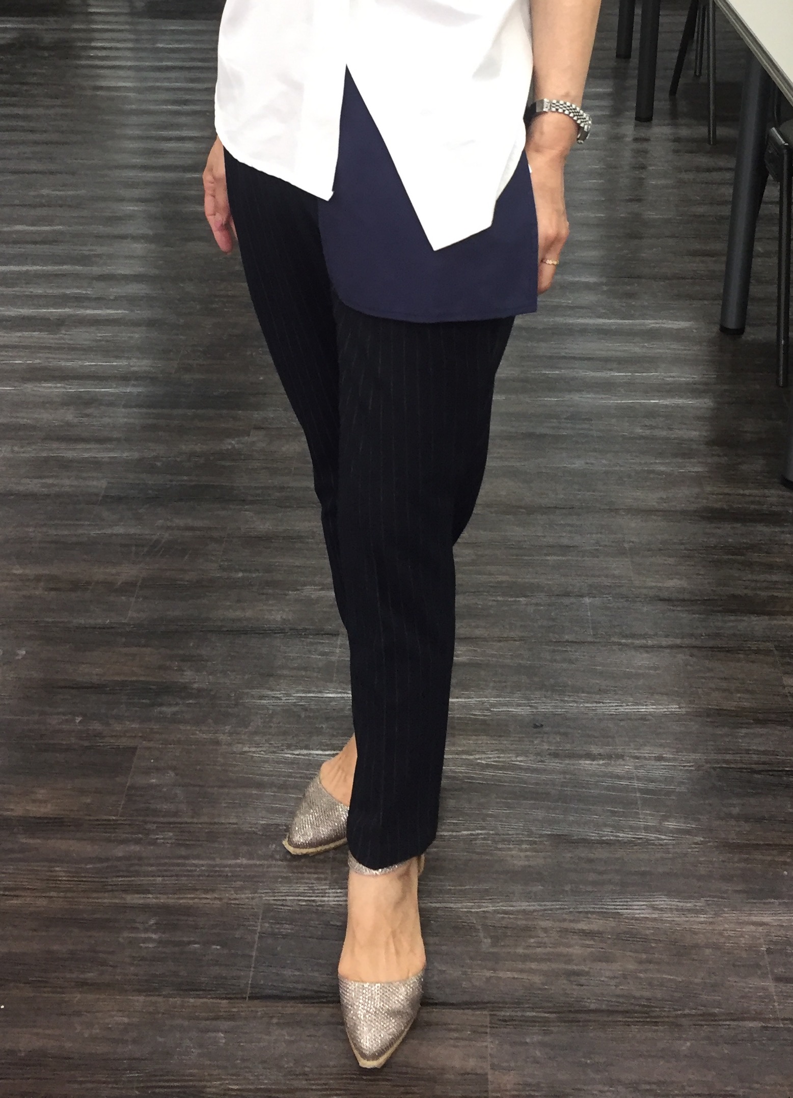 ピンストライプのテーパードパンツ すっきり着やせ効果抜群のテーパードパンツはおしゃれなピンストライプ♡ 生地はストレッチ仕様で、ウェストのバック部分にゴムが入っているので、座ったり立ったりも、ノーストレス♡ それでもってきちんと見えるから大人気なのです おサイズは、S〜3Lまで、6サイズで展開しております この機会にぜひーーーっ ピンストライプテーパードパンツ 10800円 2016年9月28日